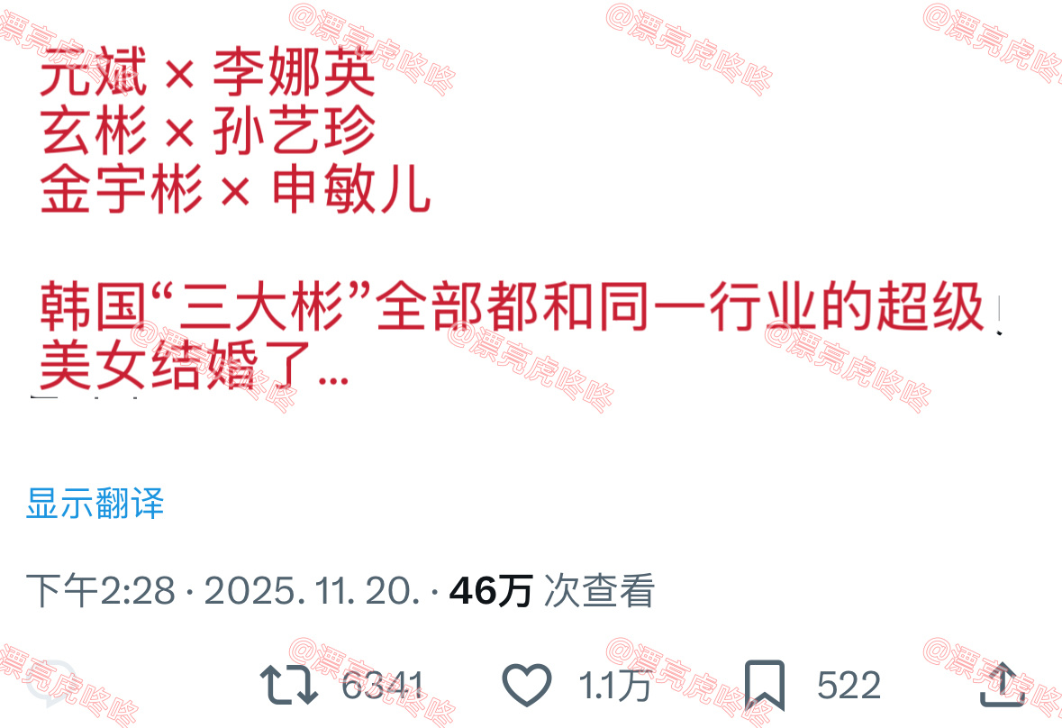 【twi】韩国“三大彬”全部都和同一行业的超级美女结婚了