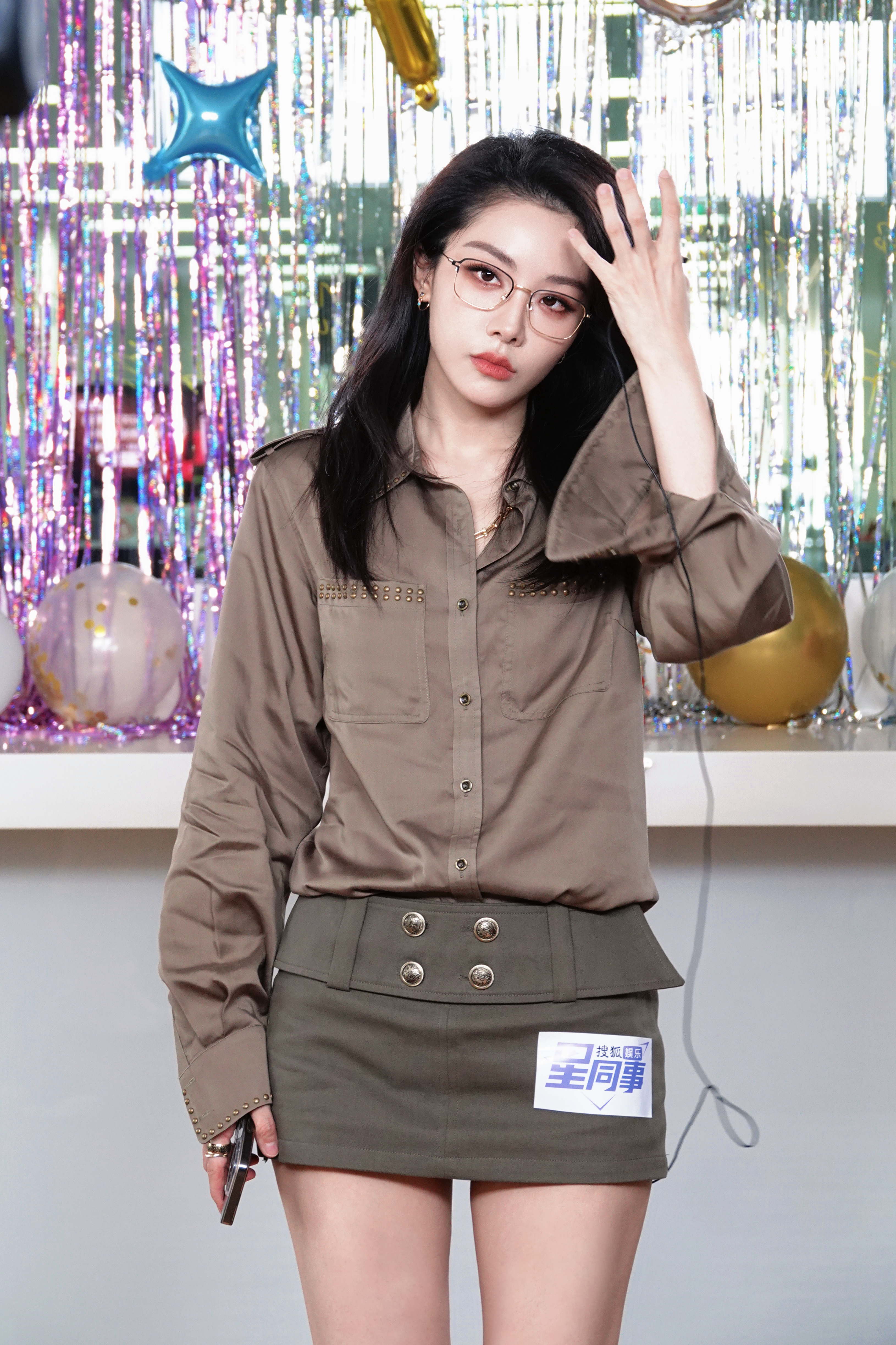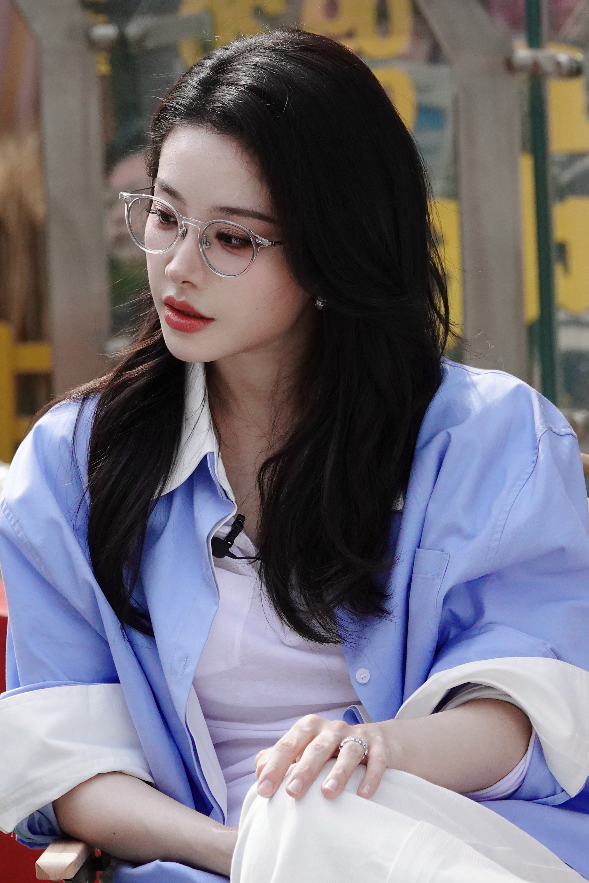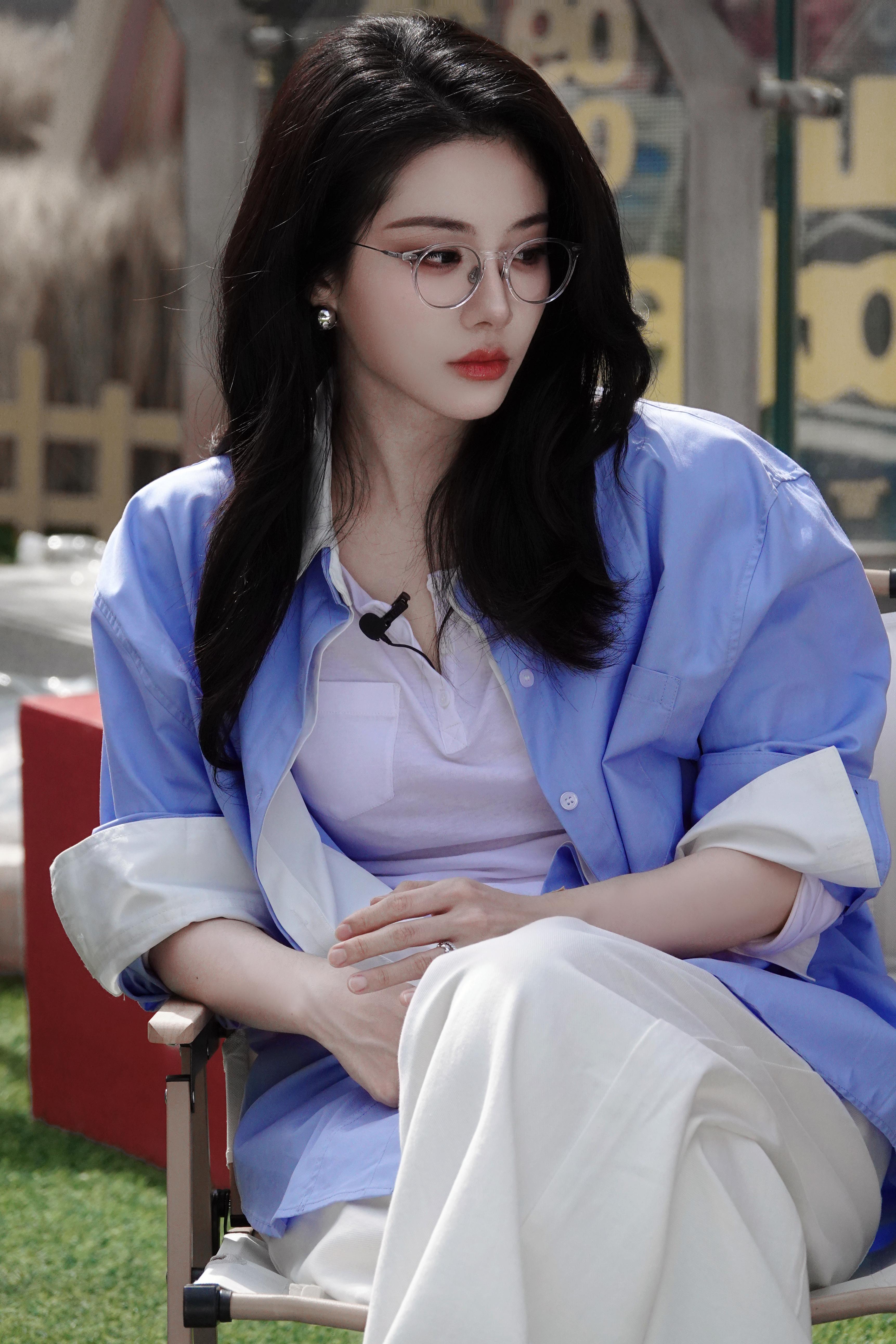 喻言 长发微垂,细框眼镜衬得眼神温柔又带点慵懒,发丝拂过肩头时,连光影都跟着软了下来。