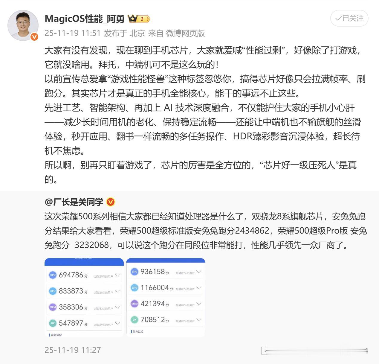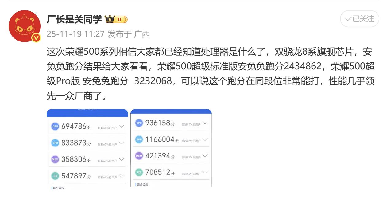 你敢信?6.55英寸轻薄机身竟然塞下8000mAh大电池!荣耀500系列这次玩太大了! 别家旗舰还在卷影像,荣耀直接把电池容量干到新高度!比前代暴涨60%,重度使用一天还剩40%电量,中度使用直接两天一充!关键是厚度没增加,还支持IP68防水,这波操作太秀了~ 更狠的是Pro版,骁龙8 Elite芯片+100W快充,20分钟就能充到60%。反向充电给iPhone都快赶上官方快充了!对比同价位机型,这续航能力简直降维打击! 现在问题来了:这续航神器,你准备冲标准版还是Pro版?