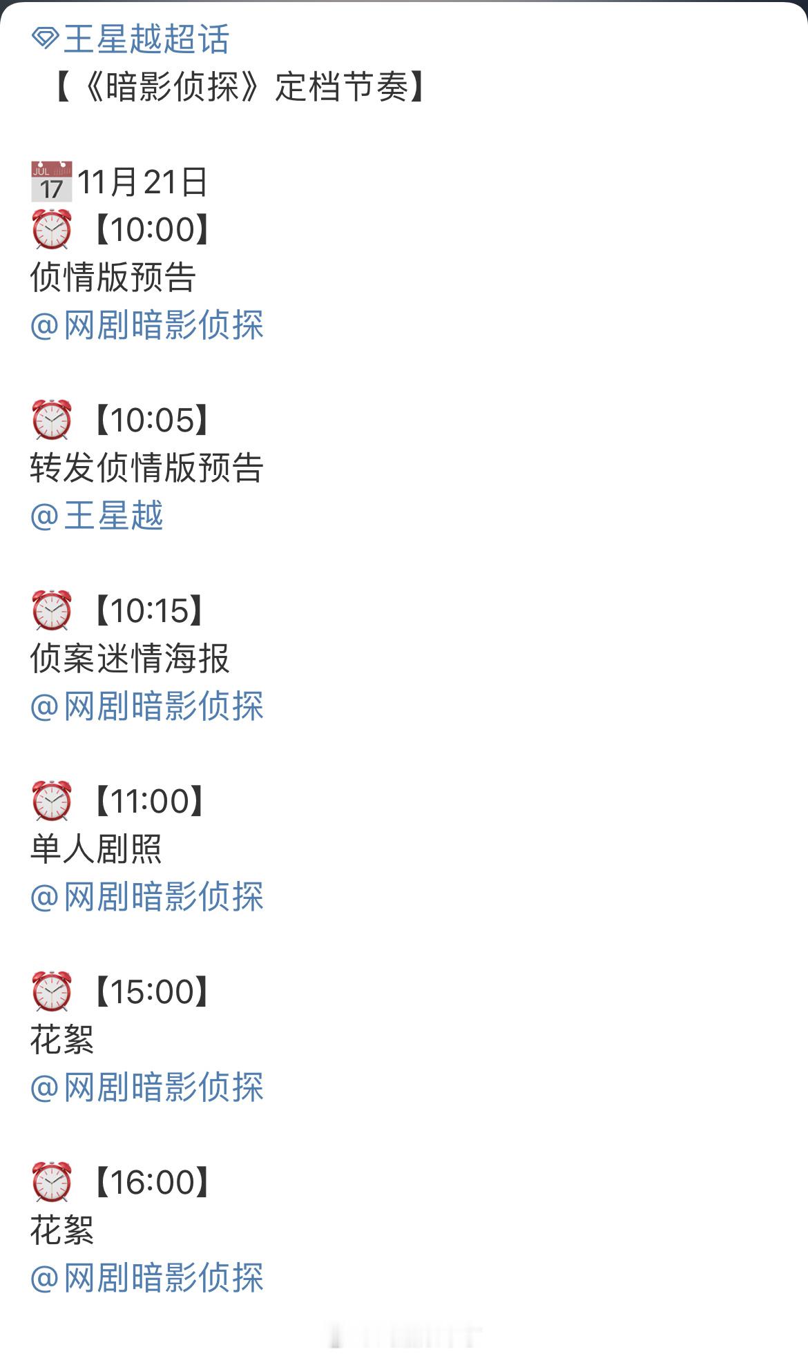 王星越《暗影侦探》发布定档节奏迎接20岁的关岑
