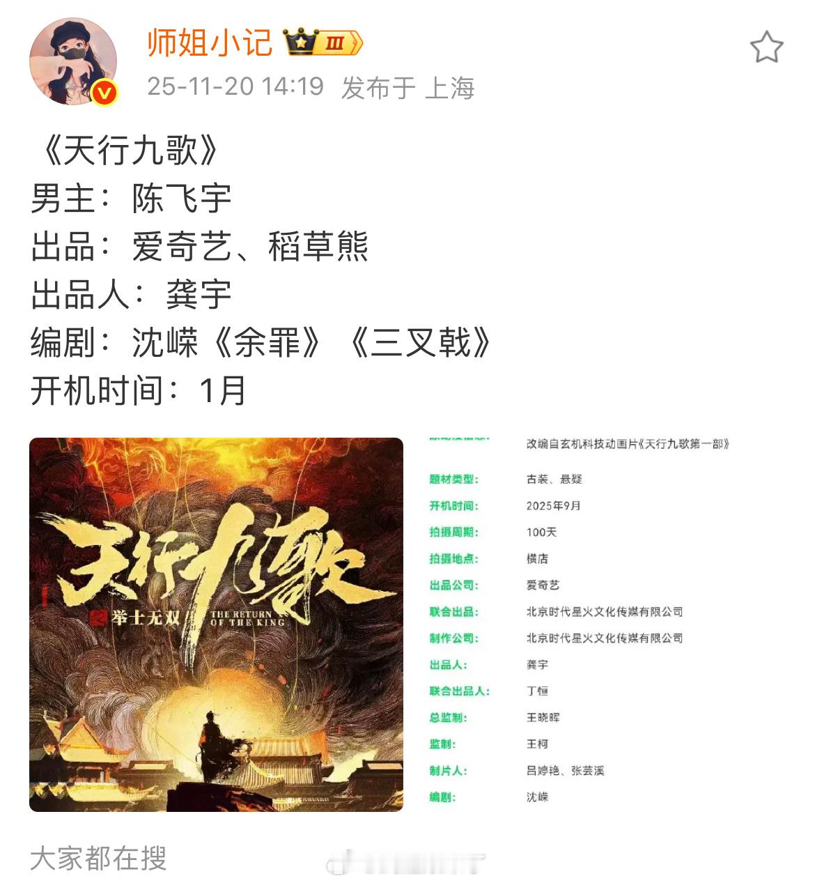 《天行九歌》主演陈飞宇,编剧:沈嵘《余罪》《三叉戟》,这班底不错!所以说陈飞宇是告白唯一首选,但告白不是陈飞宇唯一首选!