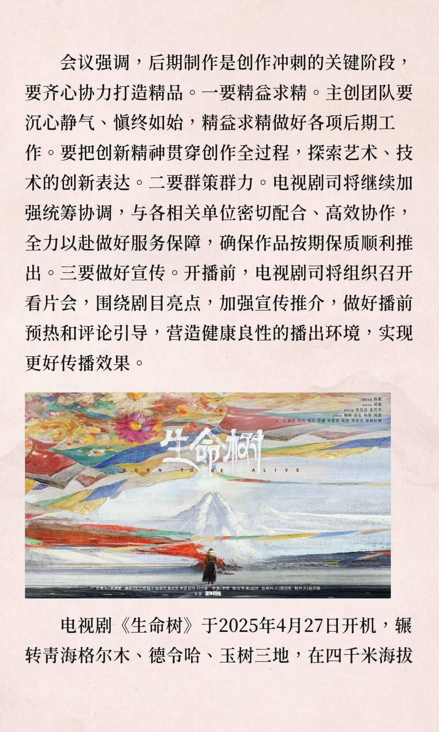 电视剧司调研指导电视剧《生命树》制作工作,期待杨紫新剧