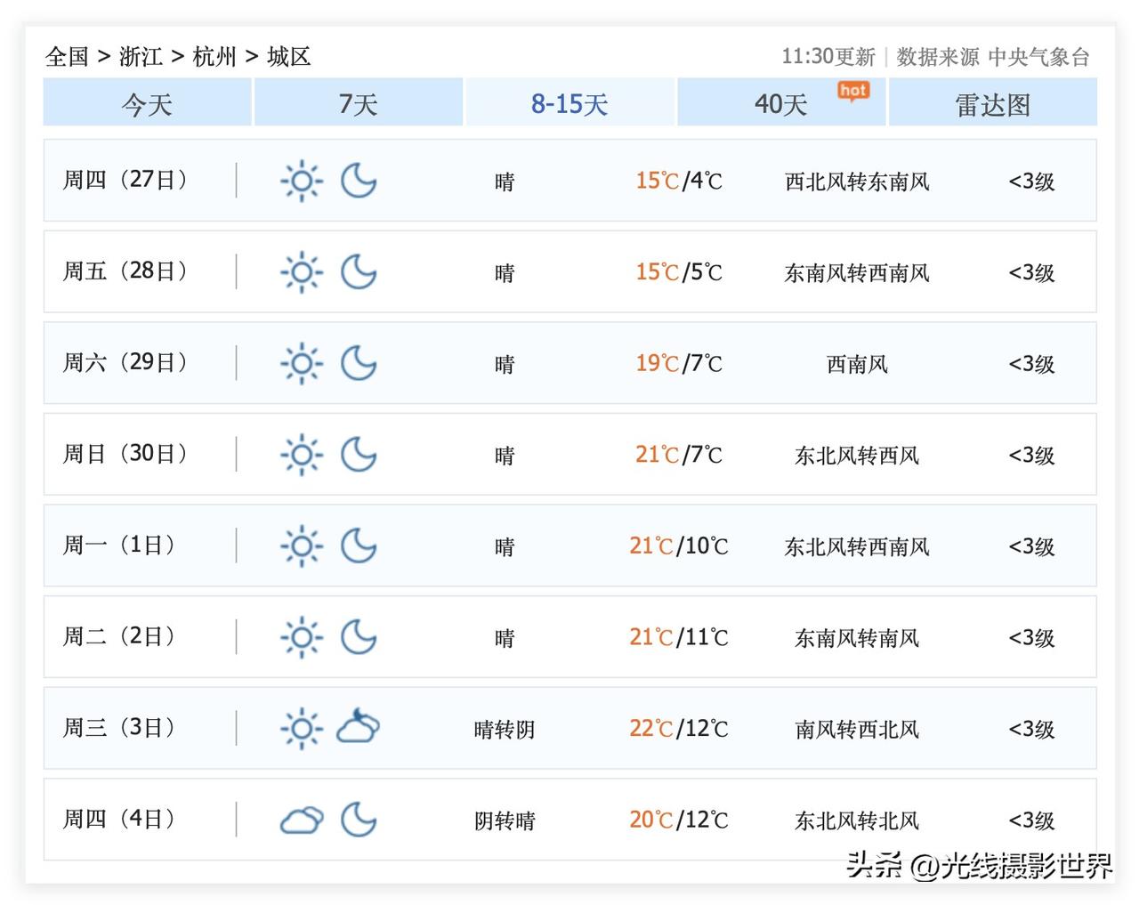 最近,杭州的早晚温差大,有利于枫叶快速变红!九溪十八涧的秋色,即将浓烈上线!11月20日下午,我看了看最新的杭州天气预报,估计,11月27日左右,去杭州看秋天是比较合适的! 当然,南京的天气要更冷一些,其实,也可以先去南京看几天,再去杭州……如果遇到天气不好的日子,就去湖州或者南浔古镇猫几天也行啊! 没有办法,秋天秋色是最值得千里迢迢去看看的,毕竟,春天夏天冬天的风景,可替代性太强了啊! 所以,杭州,南京,苏州,湖州,无锡……秋天的秋色,是非常值得去看看的。