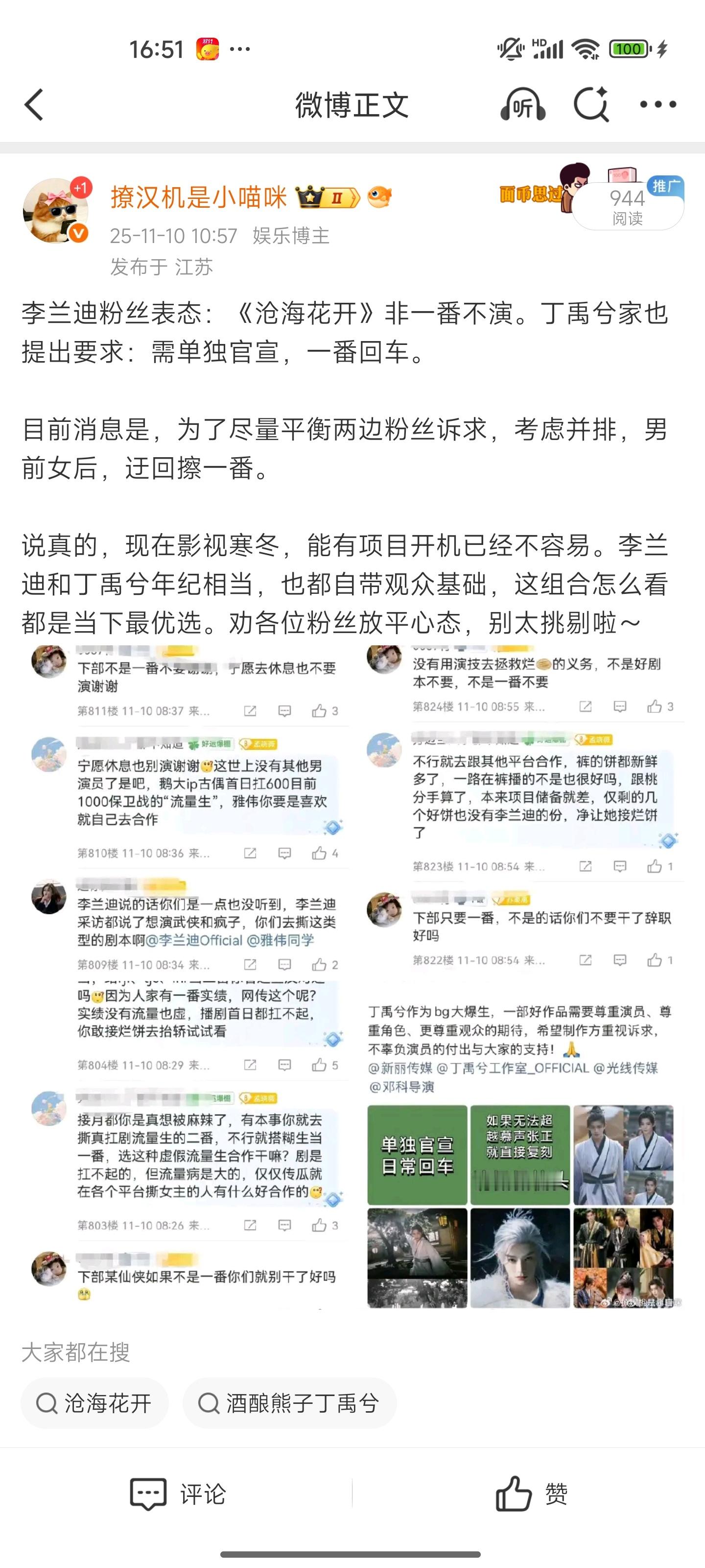 李兰迪跑路了???网传她要跟丁禹兮合作《沧海花开》