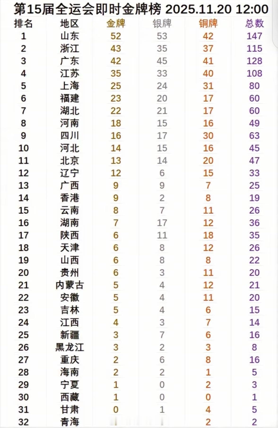 山东队金牌榜和奖牌榜都遥遥领先🥇🥈🥉