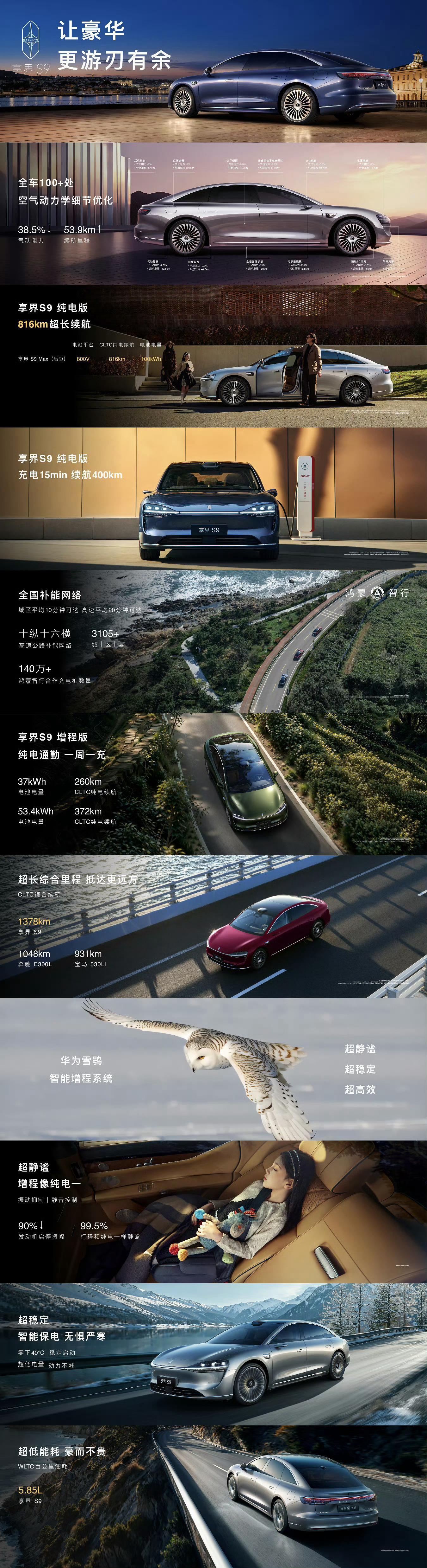 真的很喜欢余总今天说的这个词:“从从容容、游刃有余”。这不仅是一种生活态度,更应该是豪车带给我们的感觉。新款享界S9给我的第一印象就是“稳”。因为它站在了巨人的肩膀上,沿用了尊界S800和问界M9的核心配置,这让它在30万级轿车里显得底气十足。无论是城市通勤的灵活性,还是长途出行的续航表现,都让人觉得很安心。这种越级的豪华感,确实很吸引人呀!