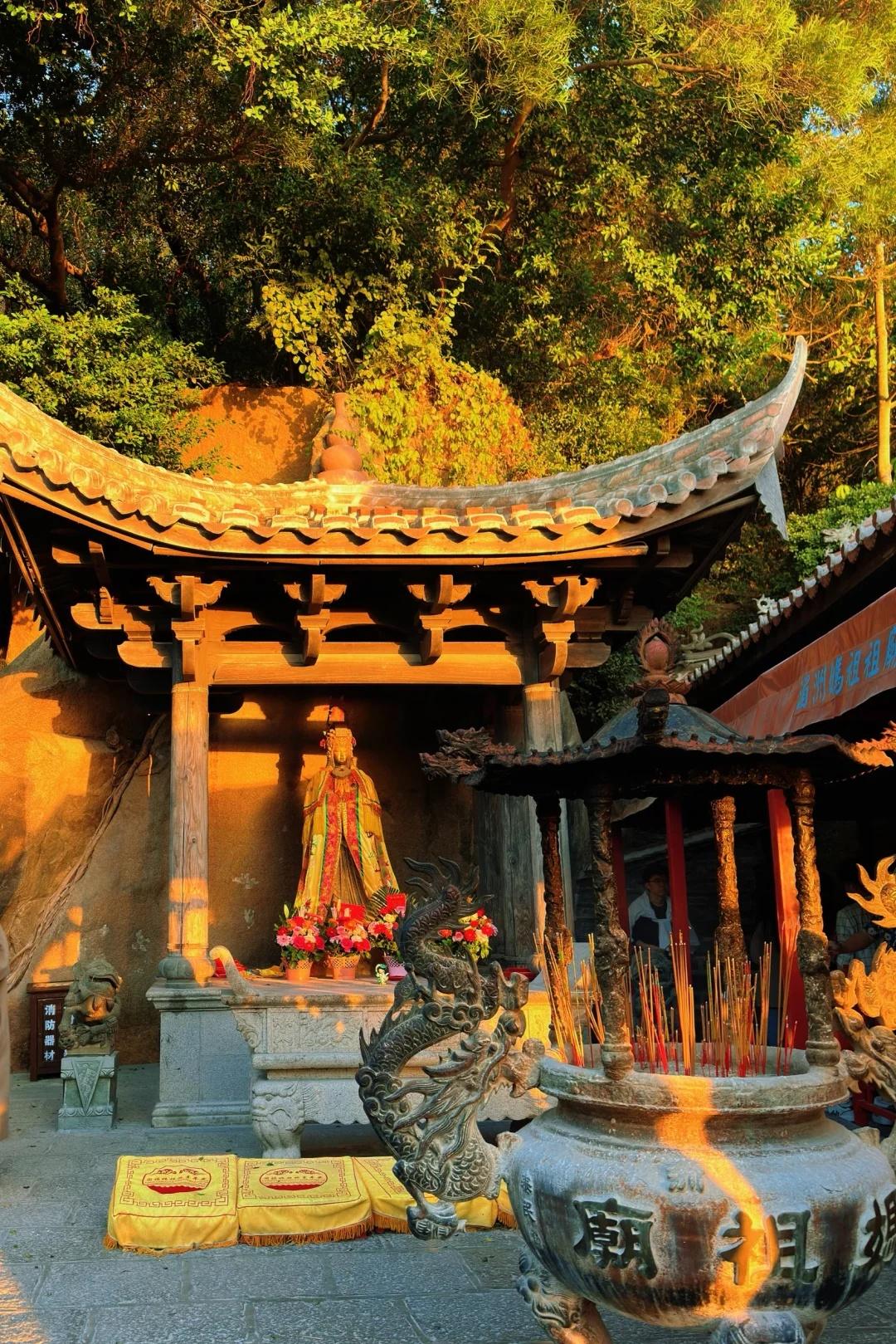 自驾游湄洲岛妈祖庙和我一样第一次拜拜看过 在湄洲岛妈祖庙看到晚霞和日落 心情真的非常好~ 下山的时候看到夜景真的不经感叹 简直是太美了诚心而来,净心而归,来了就好~ 1⃣️定位文甲码头,自驾游可以停车在那边封顶一天25,说是不可以带香火上船,现在检查没那么严格,不过寺庙附近到处都有卖,不着急买提前买好船票,来回125,20分钟一班,最晚好像9点 2⃣️住宿可以选择海景民宿,一定要看好天气,天气不好就白瞎了~民宿都不便宜,我定这三百多 晚上居然都没人 3⃣️关于吃,定位农贸市场,大店小吃基本集中在附近,晚上真的是打不到车,没那么方便,所以大家提前安排好旅游车吧~叫外卖是挺多 4⃣️妈祖印象,可看主要是叙事类,不是大型演艺的~有时间可以去妈祖影城逛逛,附近岛屿还是可以 5⃣️整座岛基本都是庙,真的找个晴天!留一天去妈祖庙,不管是看海,看落日,拜拜都是最好的选择~在妈祖雕像的路上可以看到一整片山海,超级美,我们晚上看到灯光不赴此行 5⃣️关于拜拜抽签,主殿拜好旁边有个升天古迹那个是最早的庙也是最灵验的,就是可以和妈祖说悄悄话,有杯可以问,记得说清除,名字地址,问什么事情,可以不可以,可以圣杯不可以笑杯 抽签是在佛殿和观音殿,记得5点前,要早不然就下班 6⃣️湄洲岛拜拜来了就好,来了更好~有机会一定要去湄洲岛旅游 湄洲岛旅游攻略