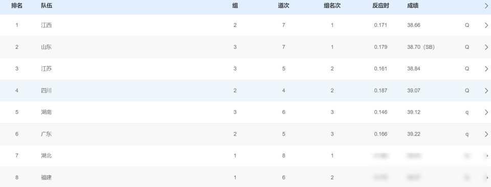 惊险晋级!广东队递补入围4×100接力决赛,苏神即将上演最后一舞 广东队昨天上午参加了男子4×100米接力预赛,跑出39秒22的成绩,排在小组第三,按照规则本来进不了决赛,但后面几组比赛结束后,他们在所有未直接晋级的队伍中刚好名列第二,以0.01秒的微弱优势压线进入决赛,四位选手陈嘉浩、刘洪熙、丘智贤和严海滨,没有太多人提到他们的名字,也没人说他们有多厉害,就这样顺利进入了决赛。 苏炳添没有出现在预赛的任何一棒,这是队伍的有意安排,为的是让他保留体力,在决赛中上场,不过这种做法确实少见,平时训练他都在场,正式比赛前却选择回避,像是在向大家传递一个信号:他还在队里,但离开的日子不远了,他曾跑出37秒79的成绩,带领队伍进入奥运决赛,如今不参加预赛,反而让大家更关注他在决赛那天是否会上场。 世界纪录是36秒84,亚洲纪录是37秒43,中国最好成绩是37秒79,中间差了将近0.6秒,日本队能够跑进37秒43,靠的是系统训练和交接技术,咱们这边更多依靠个人爆发,广东队这次没让苏炳添上场,说明替补体系还不够稳定,就算进了决赛,他们的成绩也比上届全运会冠军慢了0.8秒以上,实力差距就摆在那里。 决赛有八支队伍,江西队和四川队是大家熟悉的老面孔,山东队和江苏队这几年进步很大,湖南队第一次打进决赛,让人感到新鲜,广东队虽然靠递补获得资格,但观众最关注的还是苏炳添,不是因为队伍实力强,而是因为他名气太大,人们只记得他要上场跑步,不关心其他四位队员是谁,也没人过问他们训练了多长时间。 今晚八点二十五分,决赛就要开始,没有提前预告,也没有直播预热,连相关报道都很少,苏炳添是否参赛这件事没人知道,他如果上场,这可能是他的最后一次比赛,如果他不参加,决赛就少了一个看点,大家都在等待结果,但苏炳添自己明白,这段旅程快要走到终点了。