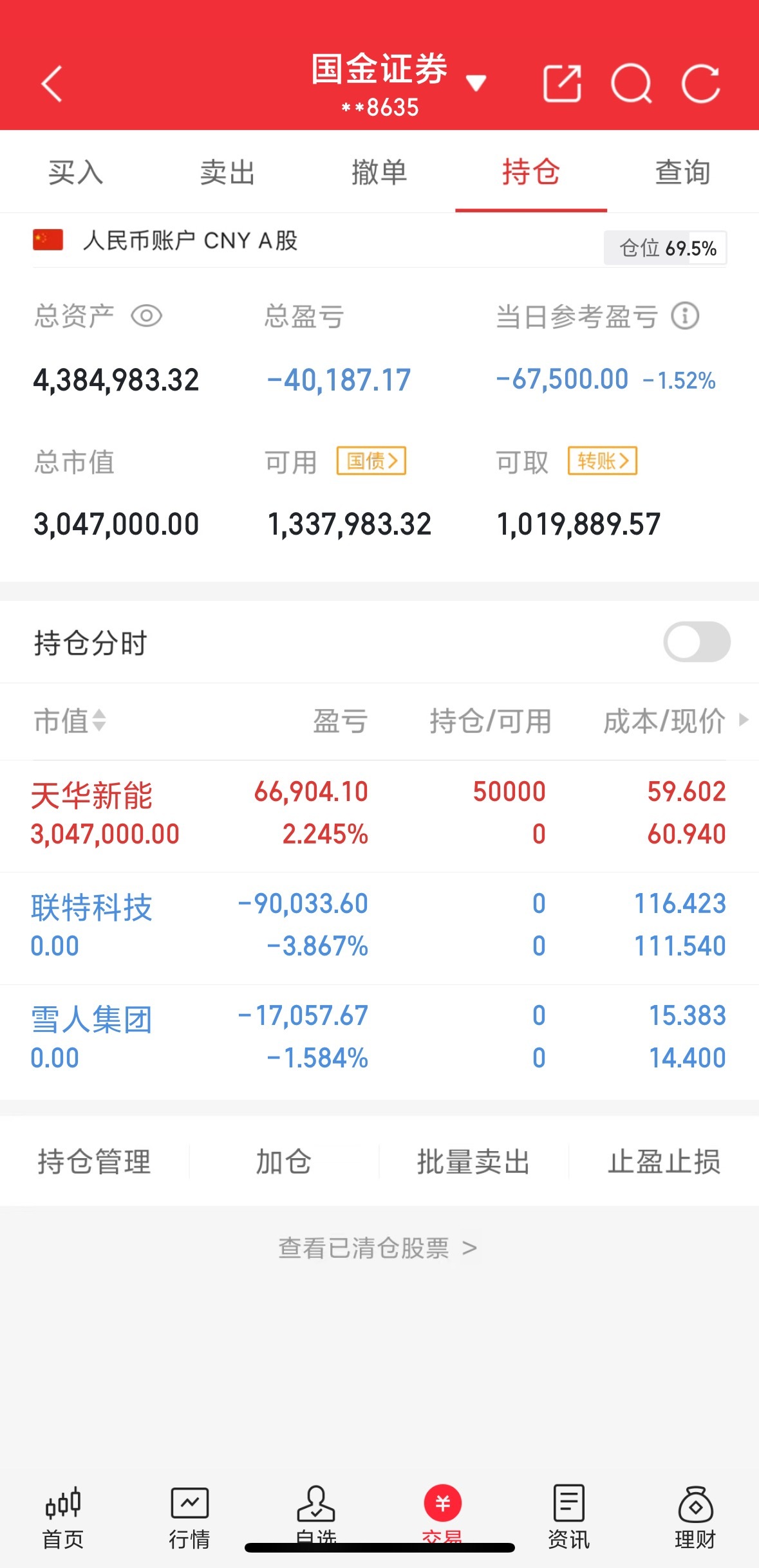 200w本金,目标1年做到1000w,1年翻五倍,欢迎各位关注验证!(第95天)今天买入:天华今天卖出:联特、雪人继续持有:其他的清了感谢大家的支持与互动,点赞富一生,评论666股市一路长虹特别声明:这只是我个人的操作记录,不作为任何投资建议,更不是劝你们跟买! 股市有风险,投资需谨慎!