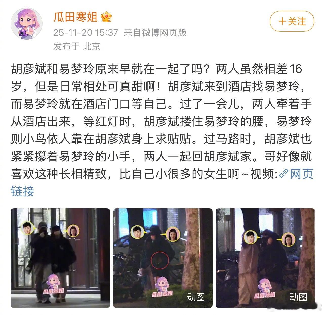 狗仔晒出之前拍到的胡彦斌和易梦玲一起回家