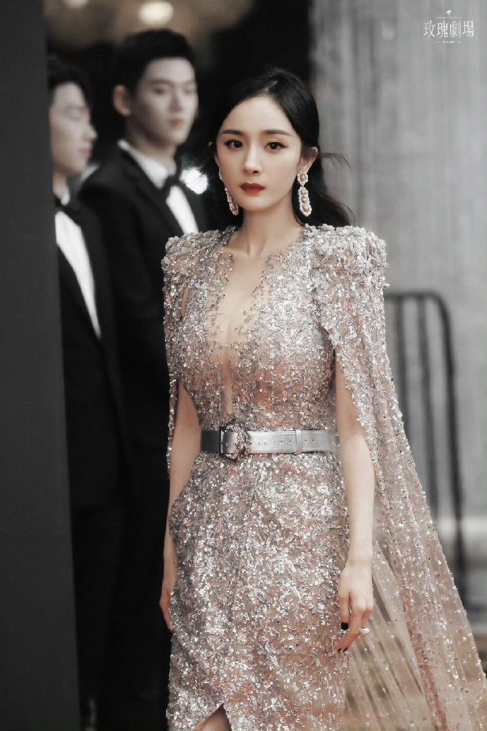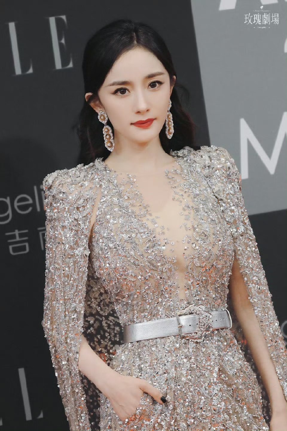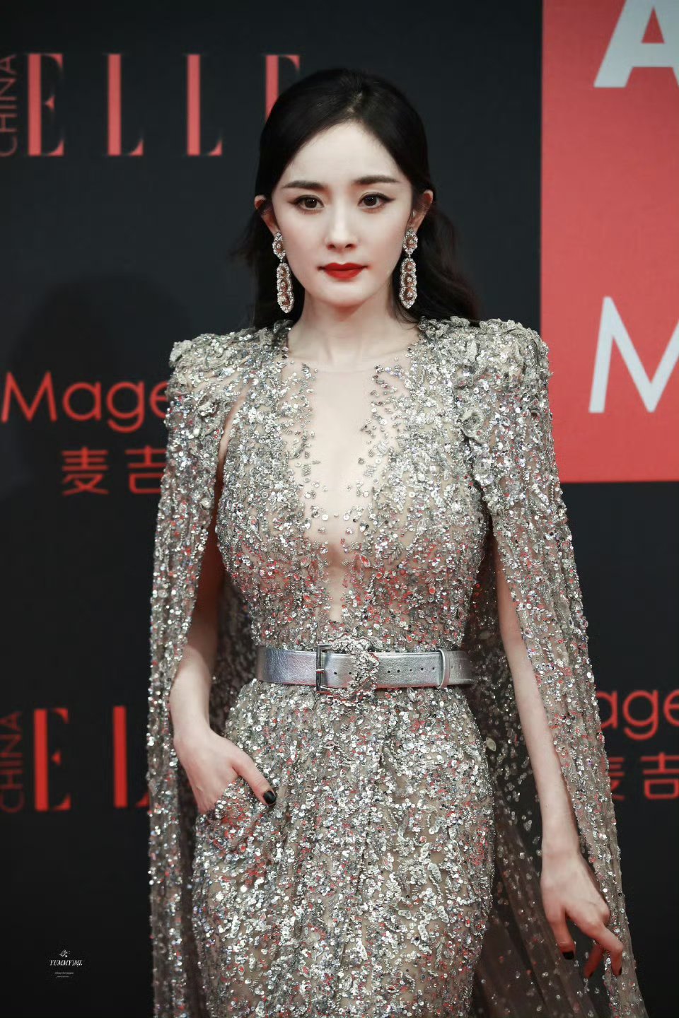 那年今日,ELLE风尚大典红毯上的杨幂,身穿流光斗篷群闪耀全场