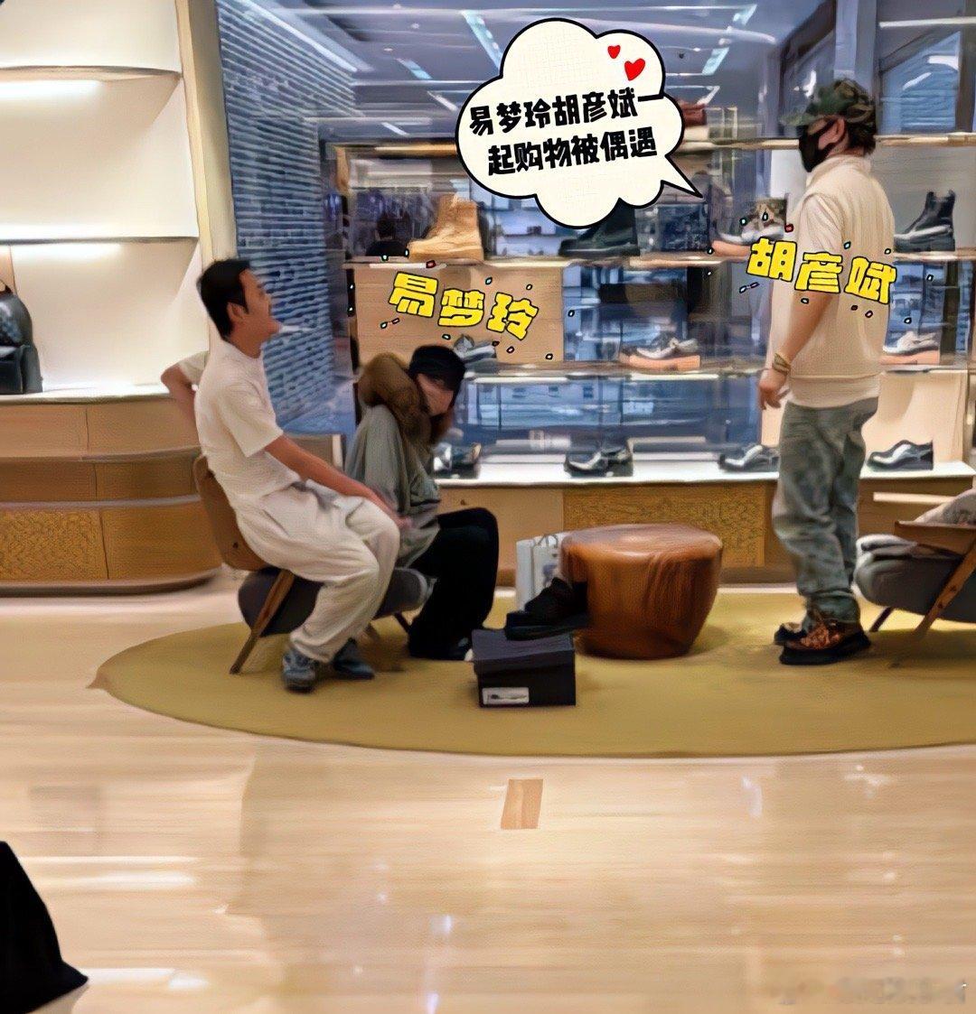 易梦玲胡彦斌恋情曝光后,网友分享了半个月前在skp偶遇他们一起逛街的照片,两人戴