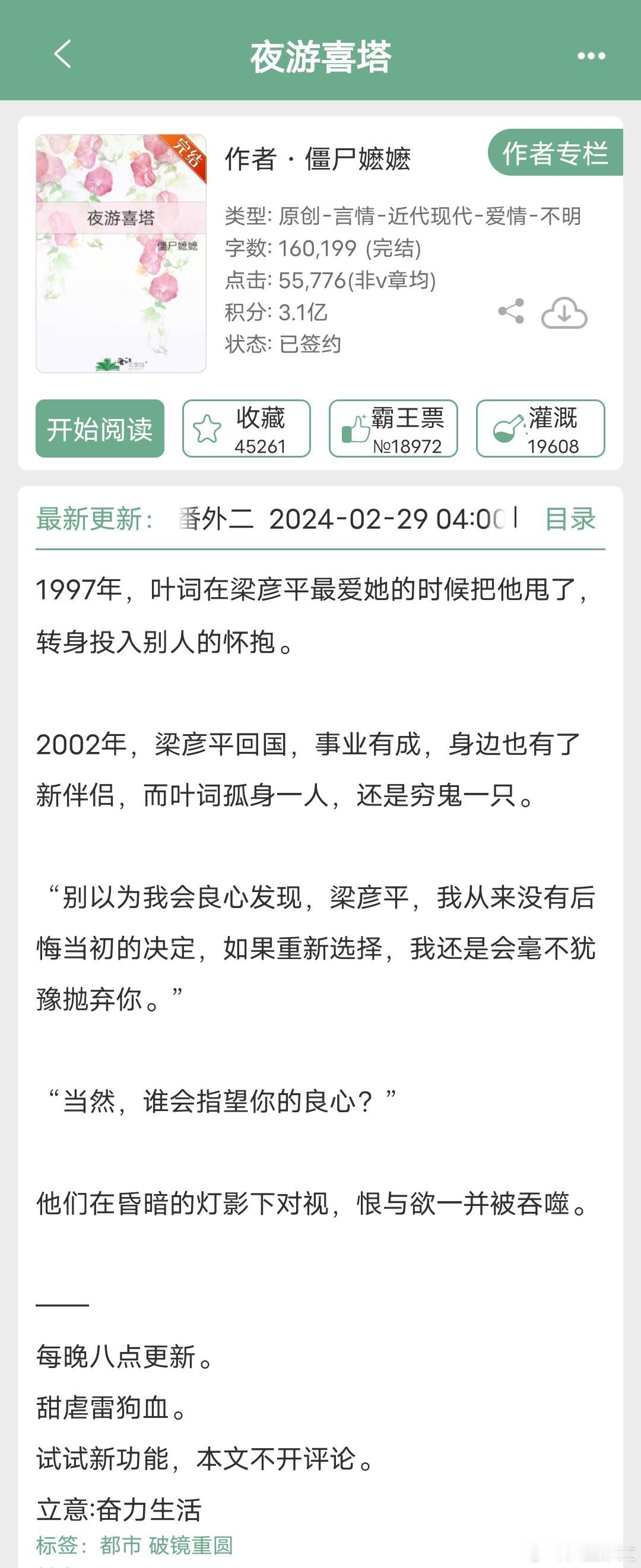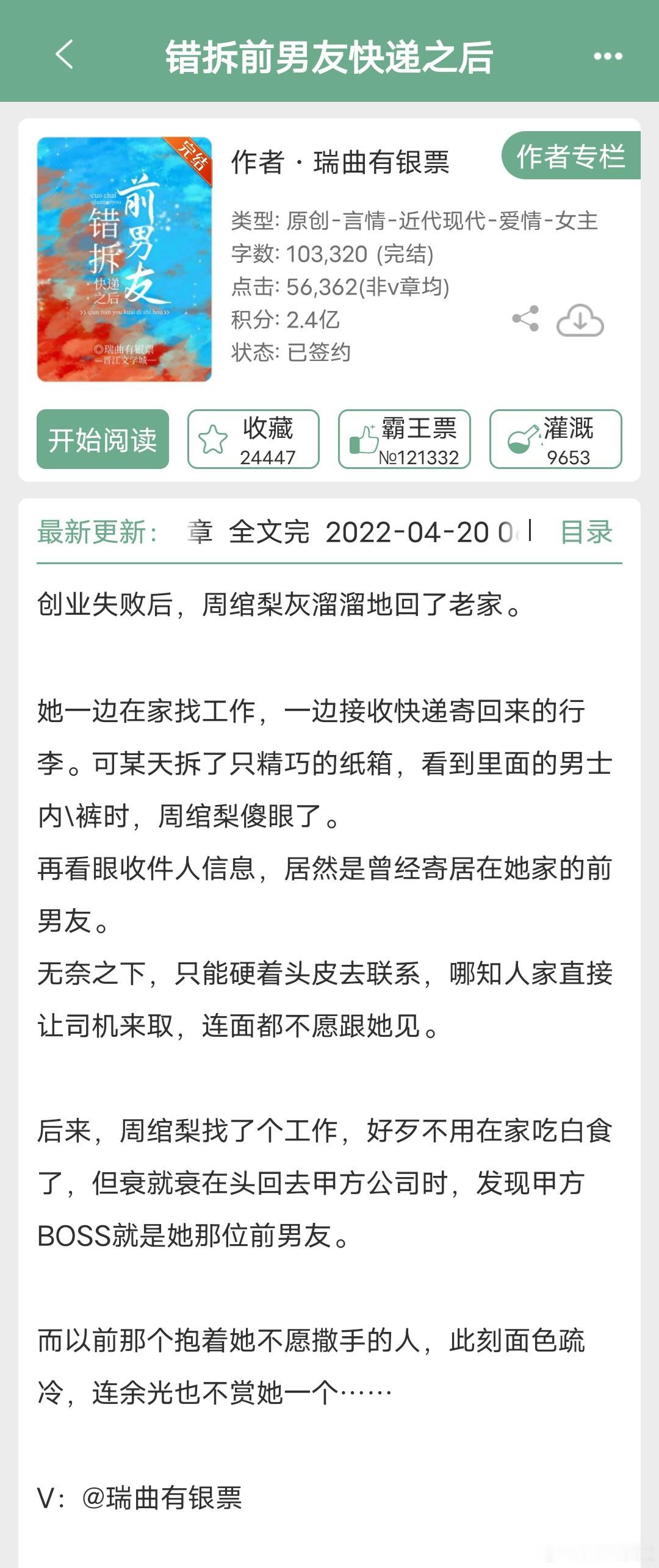 现言推文:开篇就是分手后重逢,破镜重圆1《单选题》歪柒柒2《黄雀风》瞰雾3《日偏食》喜酌4《过期糖》王六鹅5《错拆前男友快递之后》瑞曲有银票6《见字如晤》Judy侠7《越过的蓝色海》瞰雾8《知名不具》勖力9《夜游喜塔》僵尸嬷嬷10《贪财好你》Zoody11《春归鹭屿》青耳12《不再是普通朋友》青耳13《小春日和》夏诺多吉14《被前任看见一个人吃火锅》胡柚15《如果花鳗恋爱》刘汽水