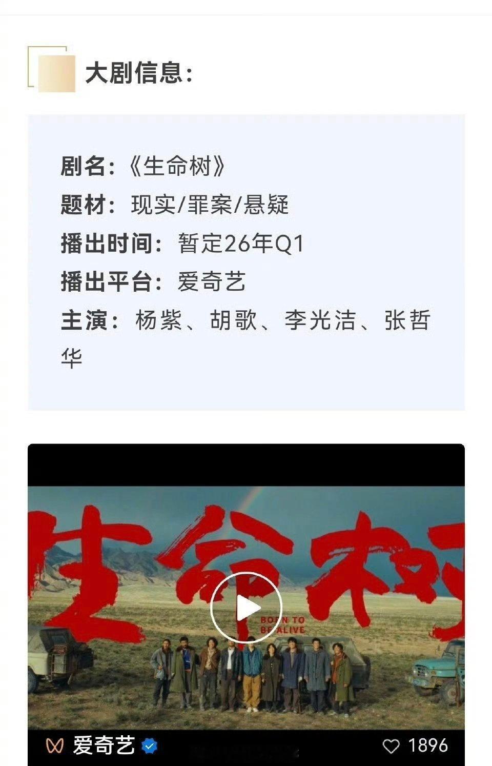 杨紫生命树开启招商,明年Q1播出