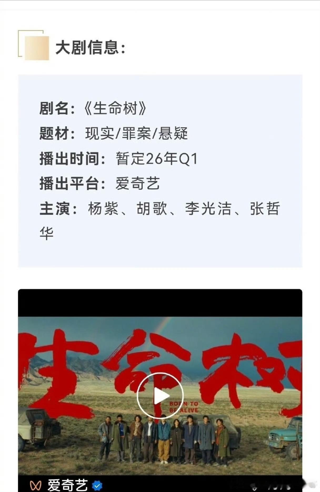 好速度,杨紫生命树开启招商了,26年Q1播出 燥候白菊警官