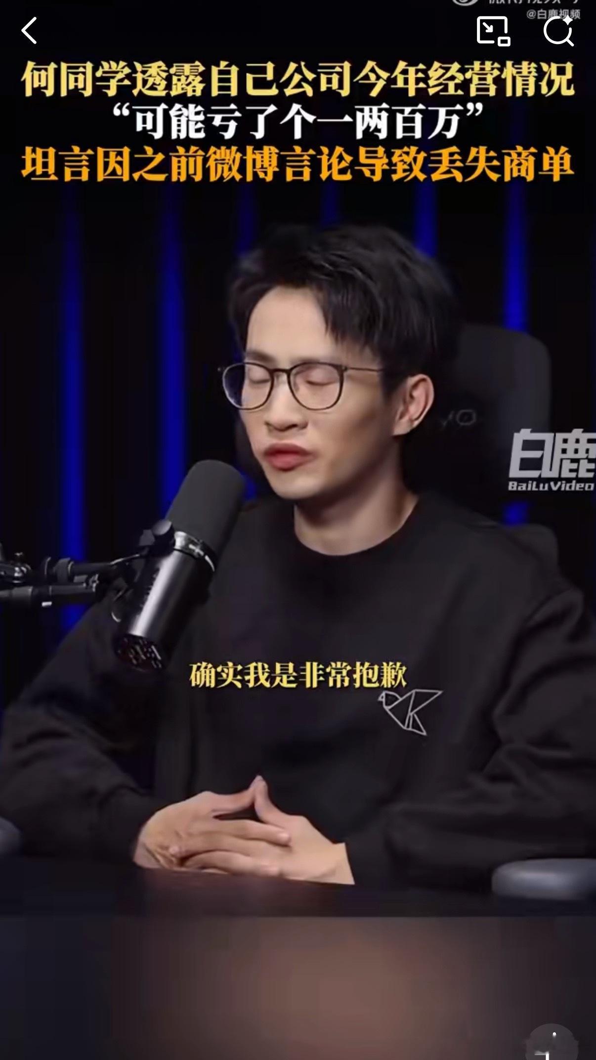 何同学说,因为上半年的网约车言论导致丢了好几单商单,然后公司今年亏钱了。他本人非常抱歉