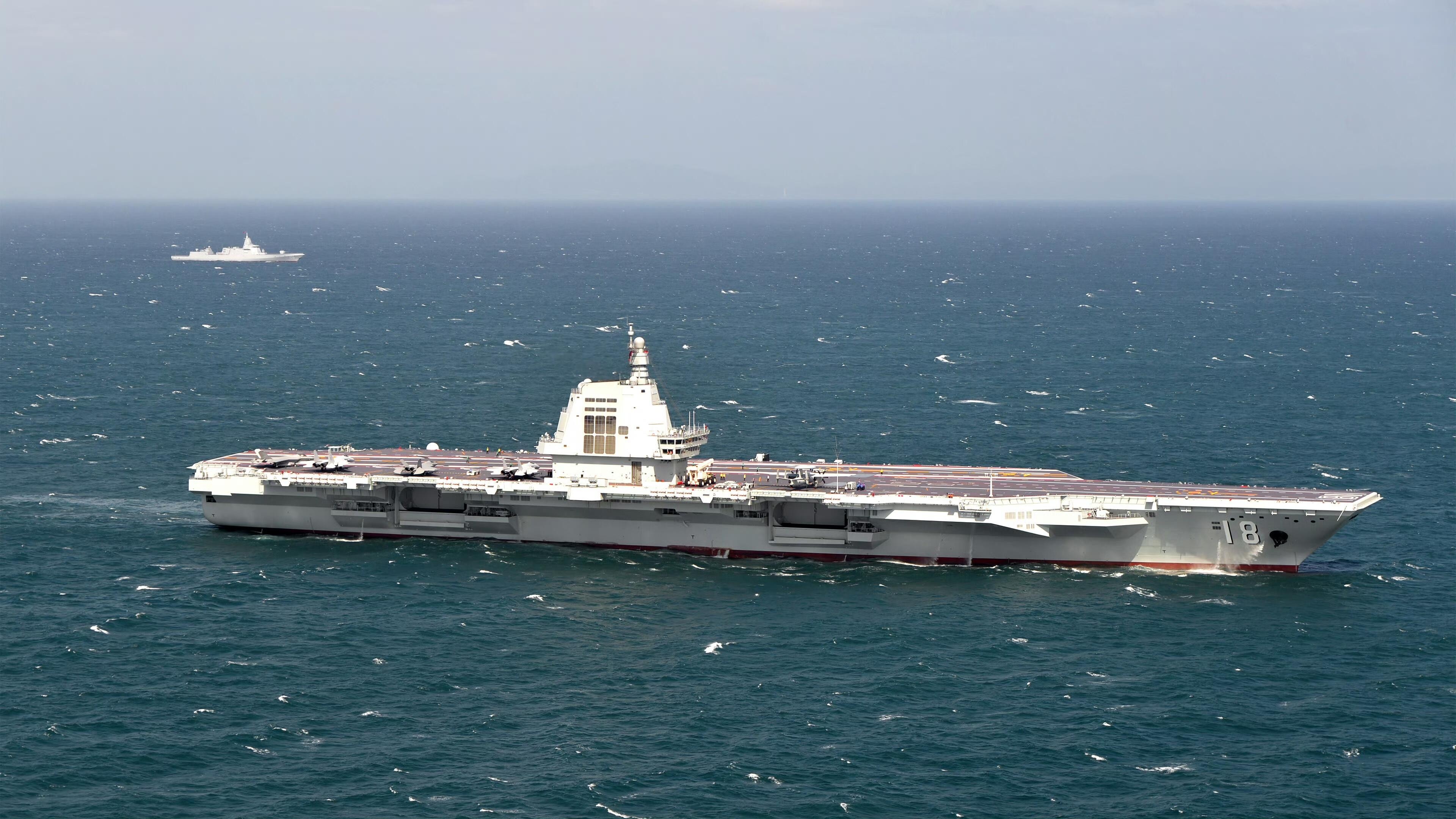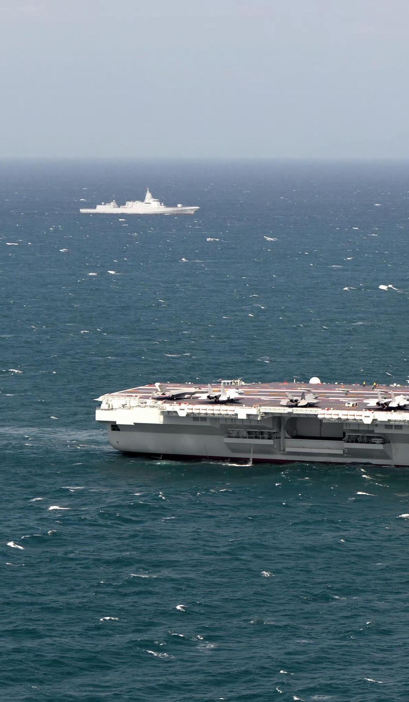福建舰航母咱们都认识,有没有网友帮忙看看,远处那艘船,看着挺小的,应该不是很厉害吧