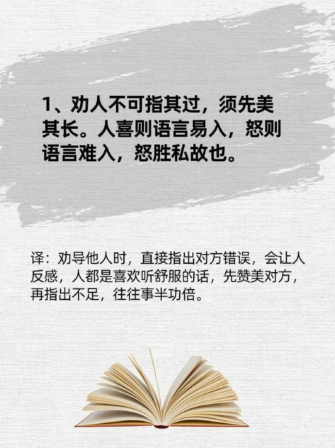 曾国藩这11句话,几乎能避免所有负面情绪,看完之后,我真的避免了! 特别是这一句,劝人不可指其过,须先美其长。人喜则语言易入,怒则语言难入,怒胜私故也。意思是劝导他人时,直接指出对方错误,会让人反感,人都是喜欢听舒服的话,先赞美对方,再指出不足,往往事半功倍。 你看是不是说得特别有道理,曾国藩这11句话,强烈建议大家没事多读一读,多品一品,真的可以避免所有的负面情绪,特别实用。#MCN双量进阶计划##寻美三湘##长沙新朋友# 晚清四大名臣曾国藩传 左宗棠传 李鸿章传 张之洞传曾国藩家