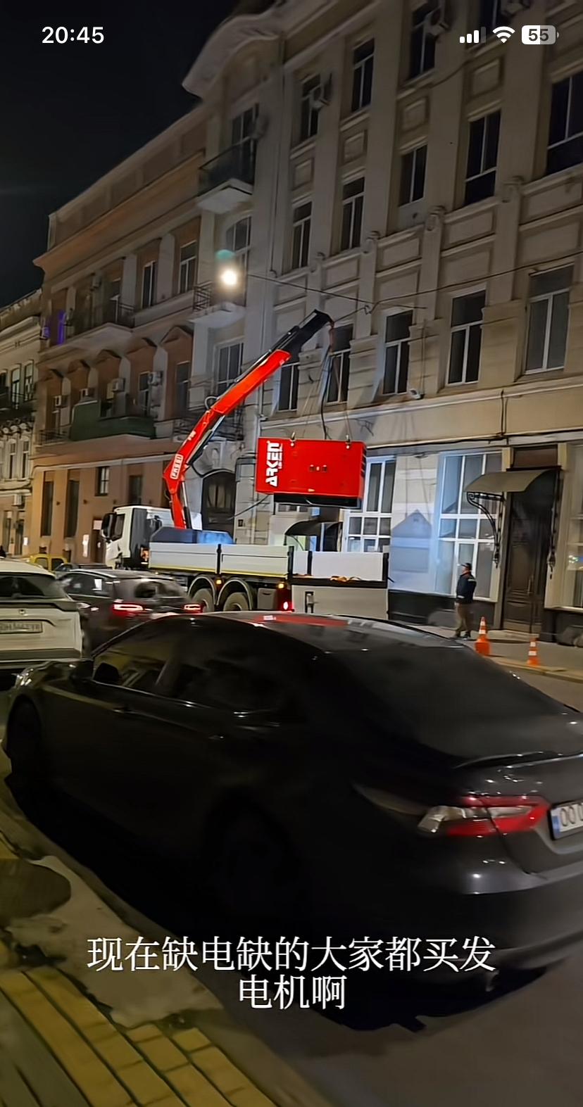 坐标乌克兰敖德萨,中国小伙说,缺电严重,家家搞发电机,有一户买了一台德国货,正在吊装。有钱人舍不得离开,有自己的产业,搞发电机有必要,穷人再坚持下去,日子只会更艰难!