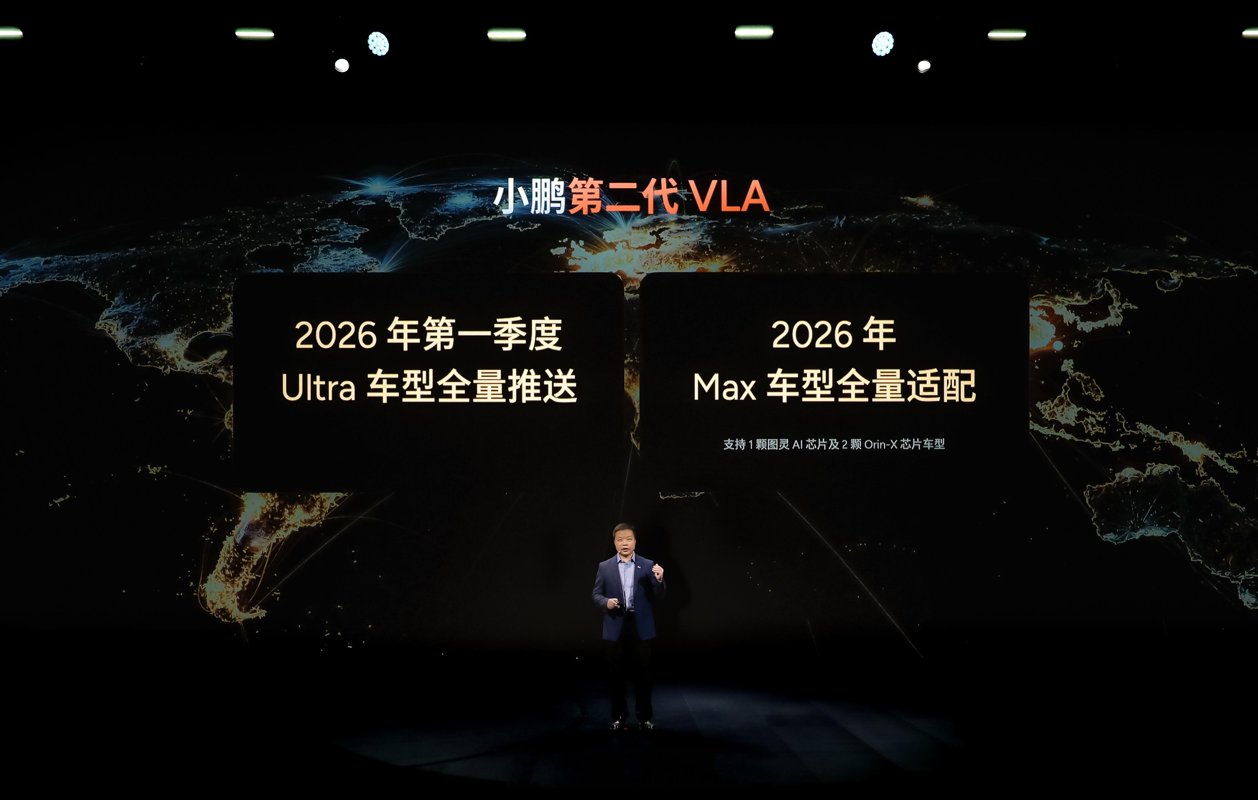小鹏X9超级增程MAX版搭载一颗图灵芯片,有效算力750TOPS;小鹏X9超级增程Ultra版搭载三颗图灵芯片,有效算力2250TOPS,为行业最高AI算力MPV,支撑更复杂的VLA视觉语言与VLM大语言模型交互。另外,小鹏X9超级增程将搭载物理世界大模型第二代VLA,推理效率更高,反应更快,能做到大路平顺驾驶、小路丝滑通过,礼让行人等智能涌现能力。2026年第一季度,小鹏汽车将先为Ultra车型全量推送第二代VLA,MAX车型也将在2026年全量适配,进一步实现科技平权。