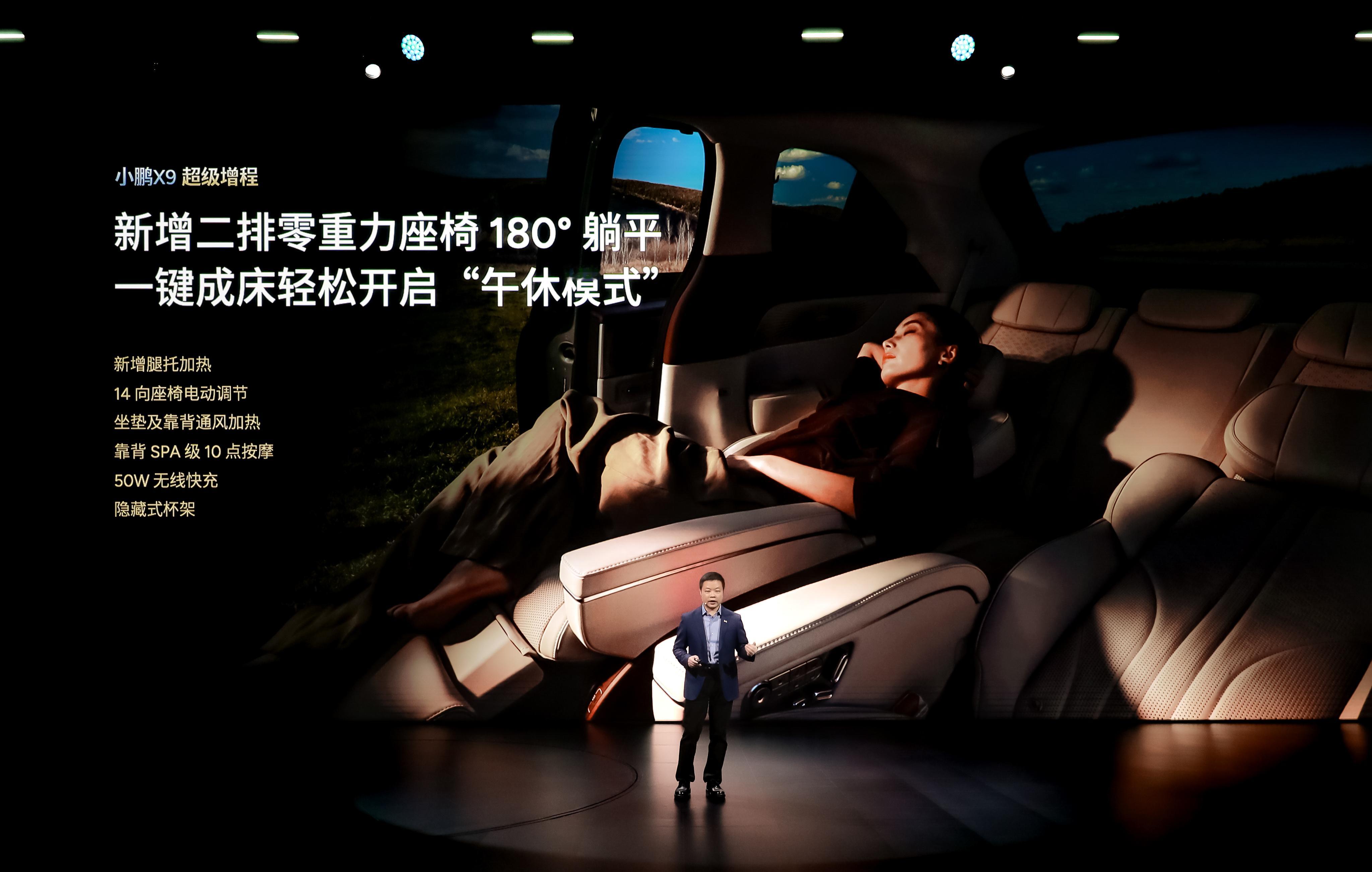 小鹏 X9 超级增程第三排座椅能躺平。说个真事,之前跟朋友开纯电版 X9 出去玩,第三排其实是最抢手的位置。因为前排要照顾第二排,座椅靠背没法调节,同样第二排得照顾第三排乘客,用不了零重力座椅。但是,第三排能调到接近半躺的状态,满座出行是自由度最大、最舒服的座位。而且现在还能 180 度完全躺平,开 X9 出去玩可能第三排更抢手了。