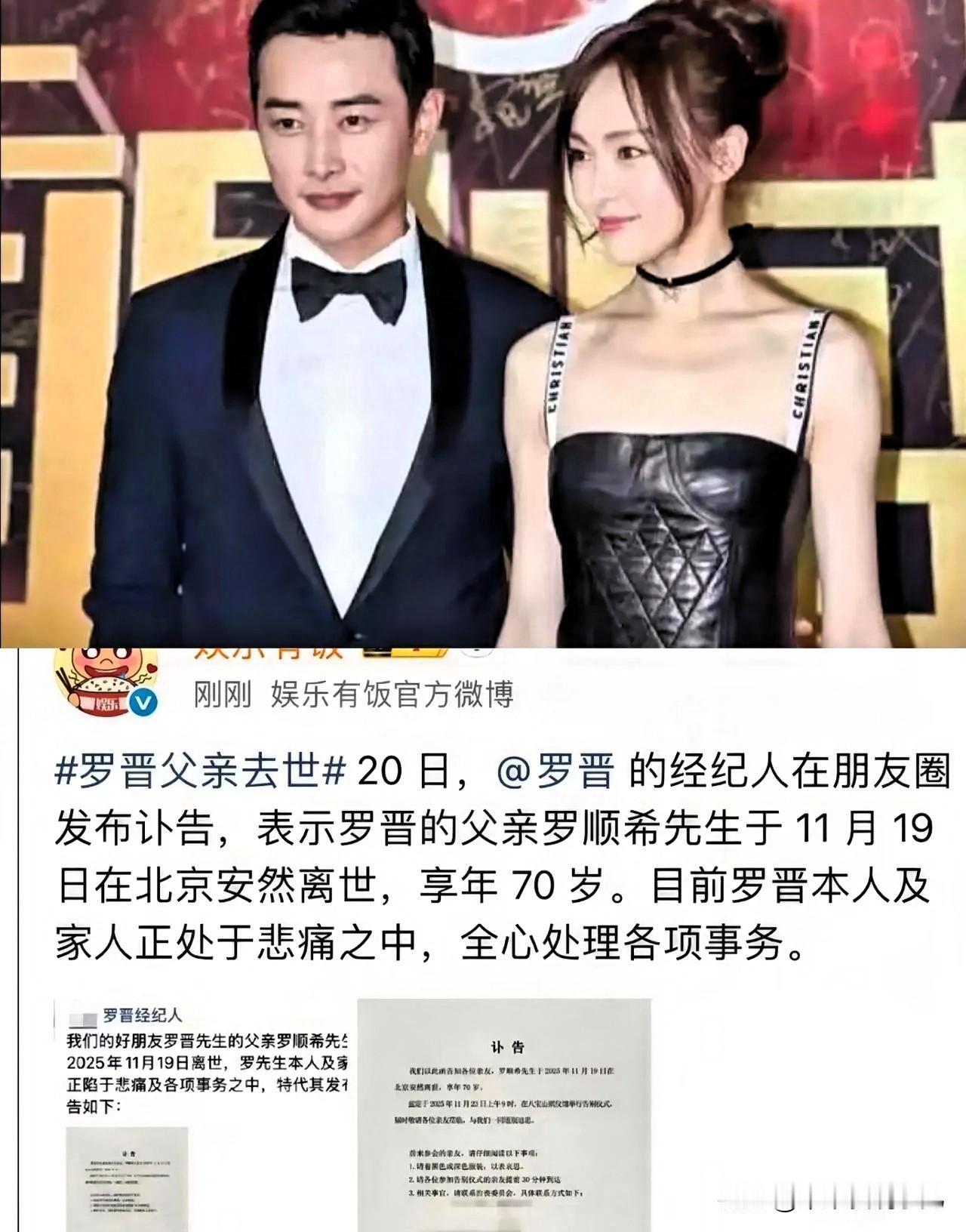 罗晋的父亲被爆突然去世 特地去查了这个事儿, 虽然希望不是真的,但查到的细节真的令人太揪心 罗晋父亲去世,罗晋心情悲痛。之前罗晋唐嫣被曝婚变,此时发生这样的事情,希望大家以死者为重。 罗晋的父亲罗顺希,于近期在北京去世,家人正在处理后事。罗晋的父亲一直以来都很疼爱罗晋,罗晋也非常孝顺,心里十分悲痛。“希望大家不要打扰我”罗晋发声称。 祝福罗晋节哀顺变!