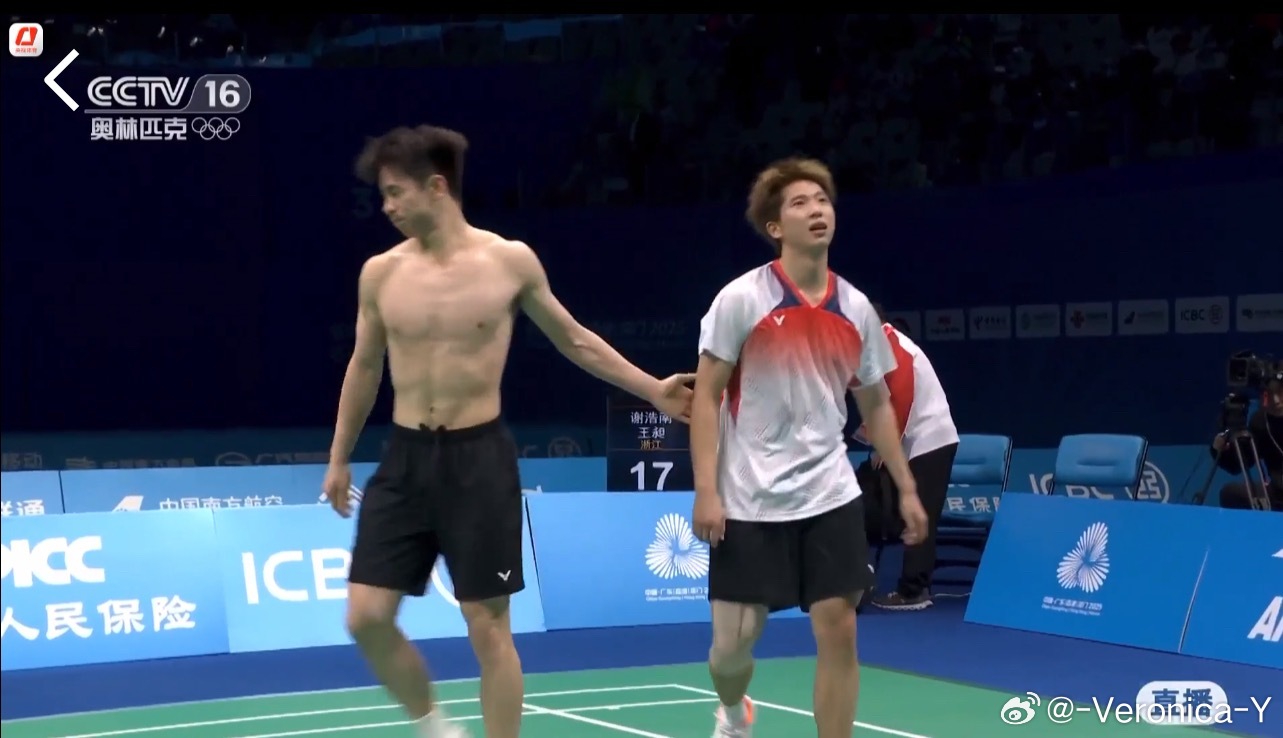 2025大湾区全运会羽毛球男子双打刘毅/刘阳2-1王昶/谢浩南(21-16 18-21 21-17)其实我真的挺喜欢刘毅(的长相)是不是挺小众的
