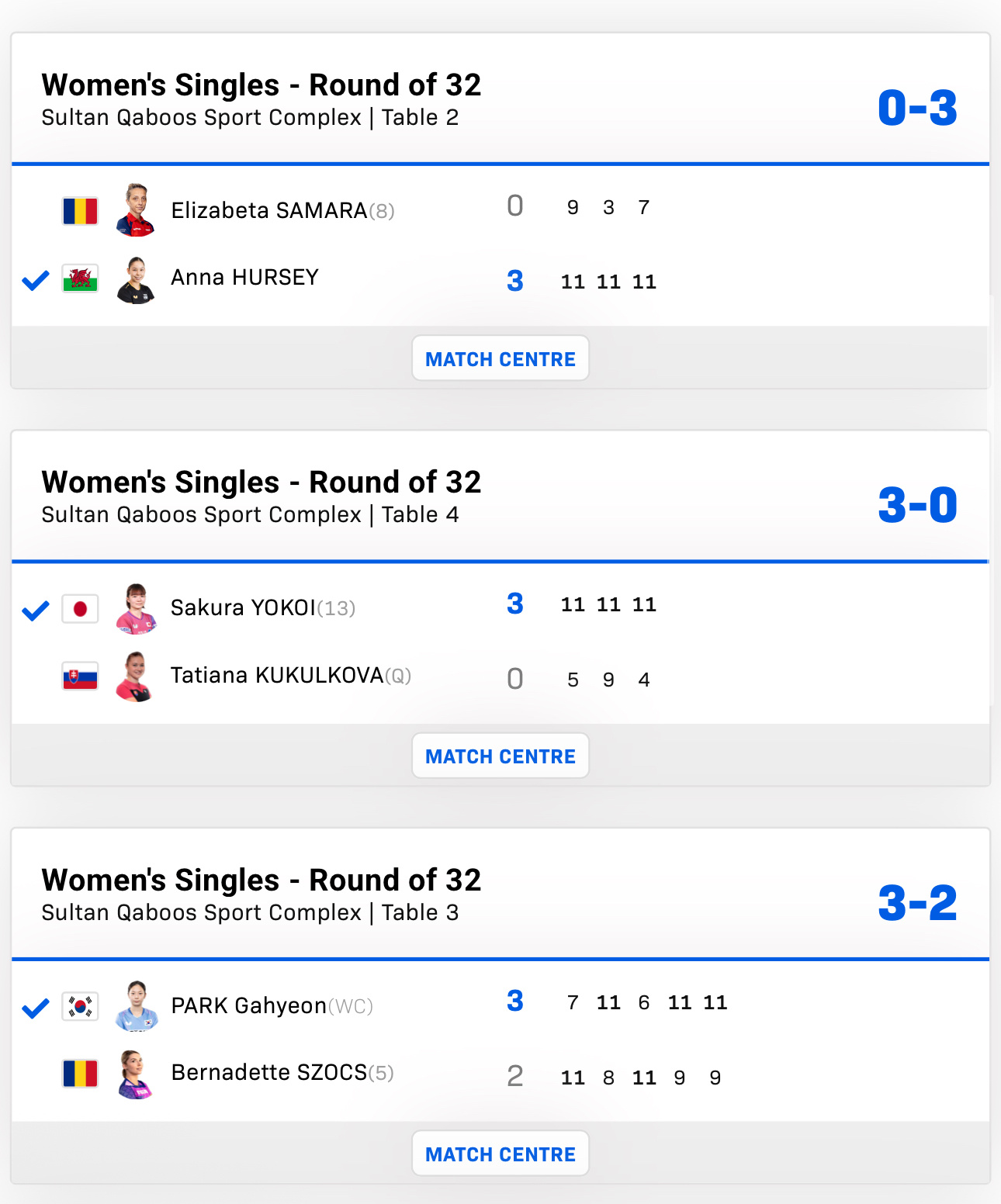 2025wtt马斯喀特球星赛男女子单打32-16F·勒布伦3-0冯翊新吉山僚一3-0塔卡奥恰洛夫3-1塞弗里德朴佳贤3-2斯佐克斯横井咲樱3-0库库洛娃赫尔希3-0萨马拉