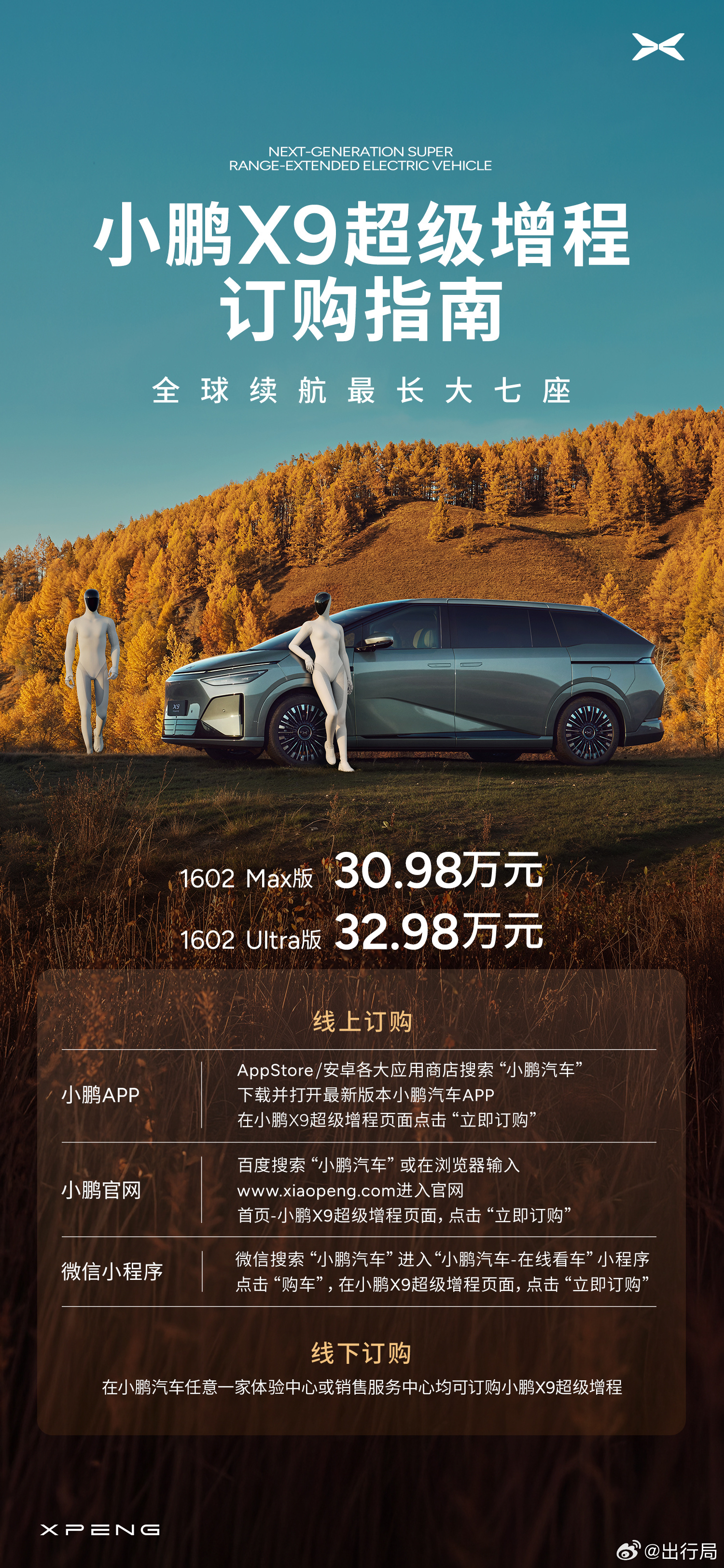 期待了很久的小鹏X9增程版终于上市了!Max版30.98万元,Ultra版32.98万元,可以说小鹏X9增程版交出了家庭MPV的一份优秀答卷!