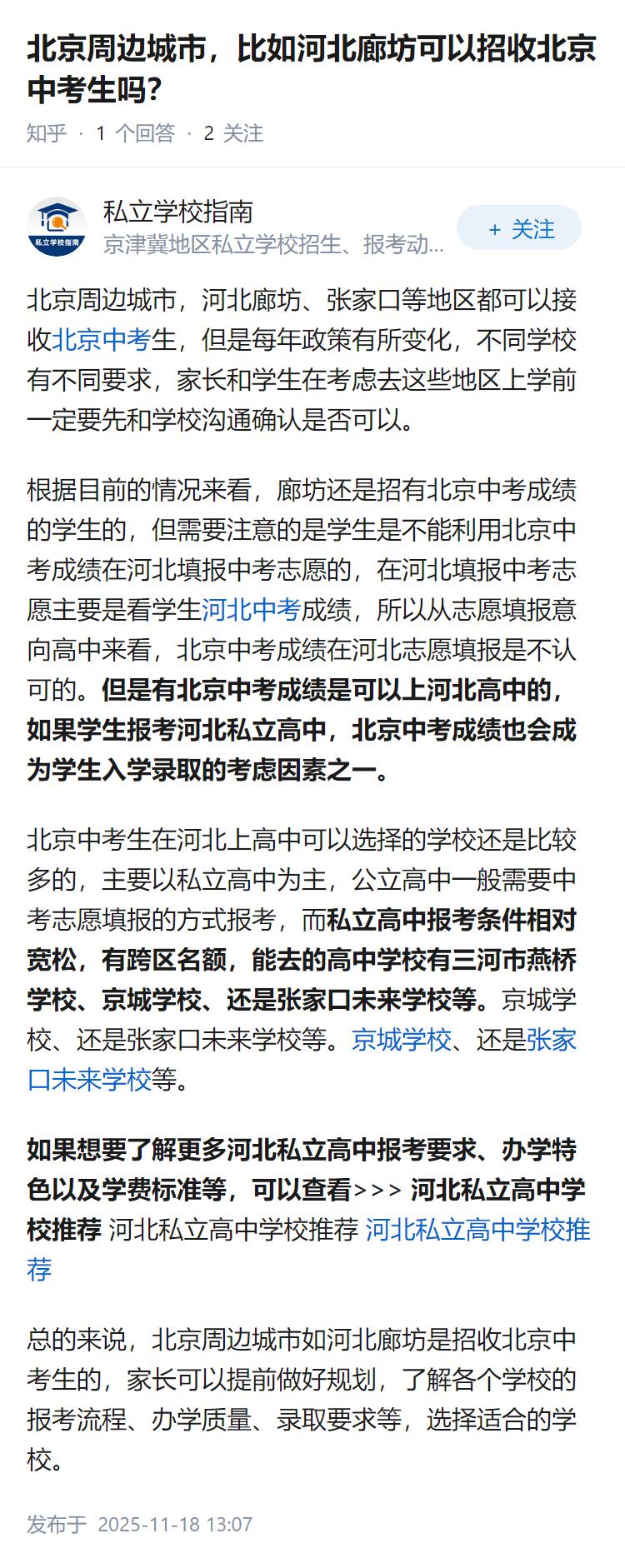 北京周边城市,比如河北廊坊可以招收北京中考生吗?