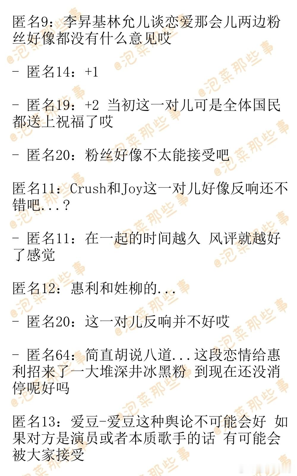 🔥韩网热帖评论翻译🔥爱豆谈恋爱有过反响良好的case吗??韩网原帖帖主发问:爱豆谈恋爱有过反响良好的case吗??刚开始爆出来肯定不会有好反响 有没有那种随着时间流逝舆论好转的情侣啊?cr.instiz