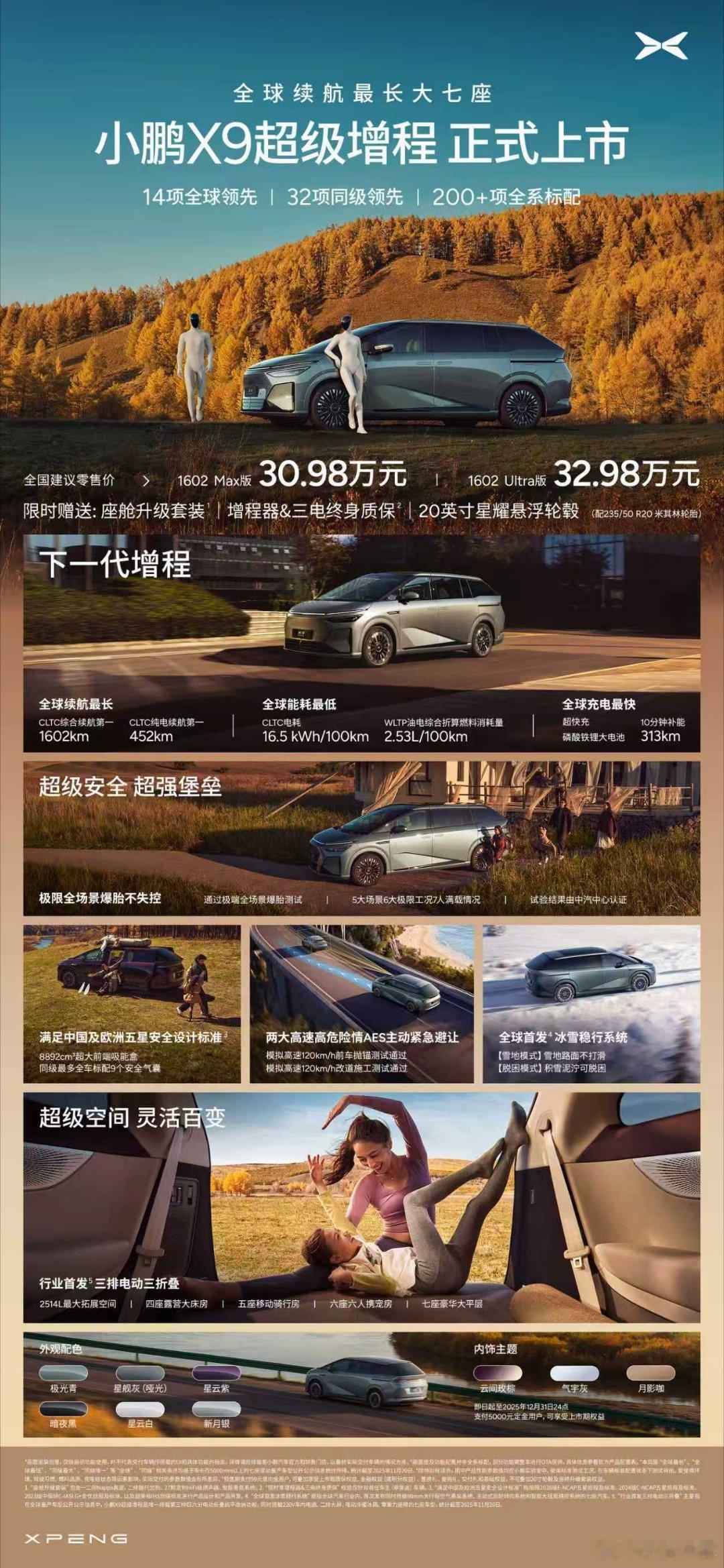 小鹏X9超级增程版正式上市了,30.98万起这价格是真的香!