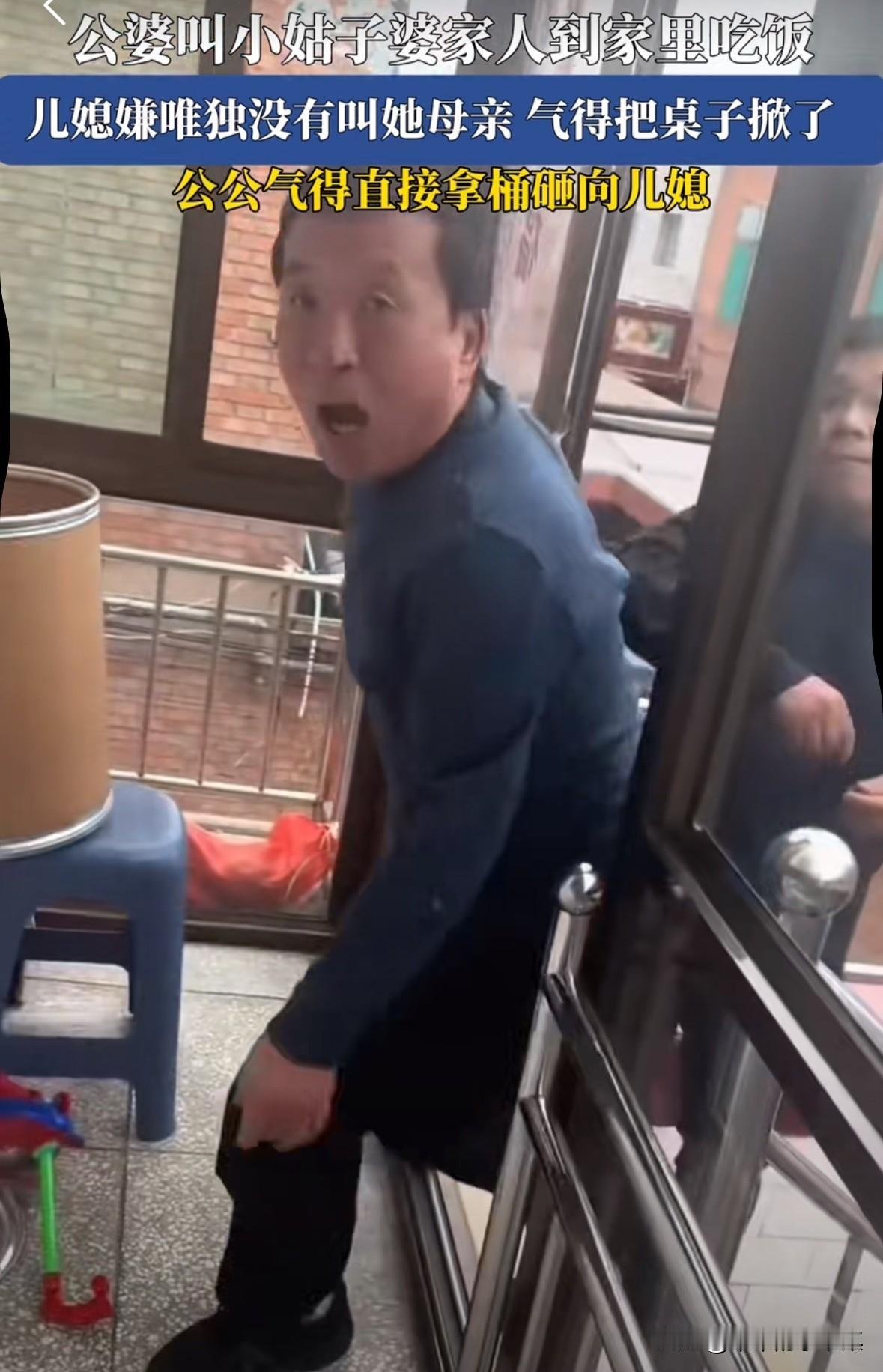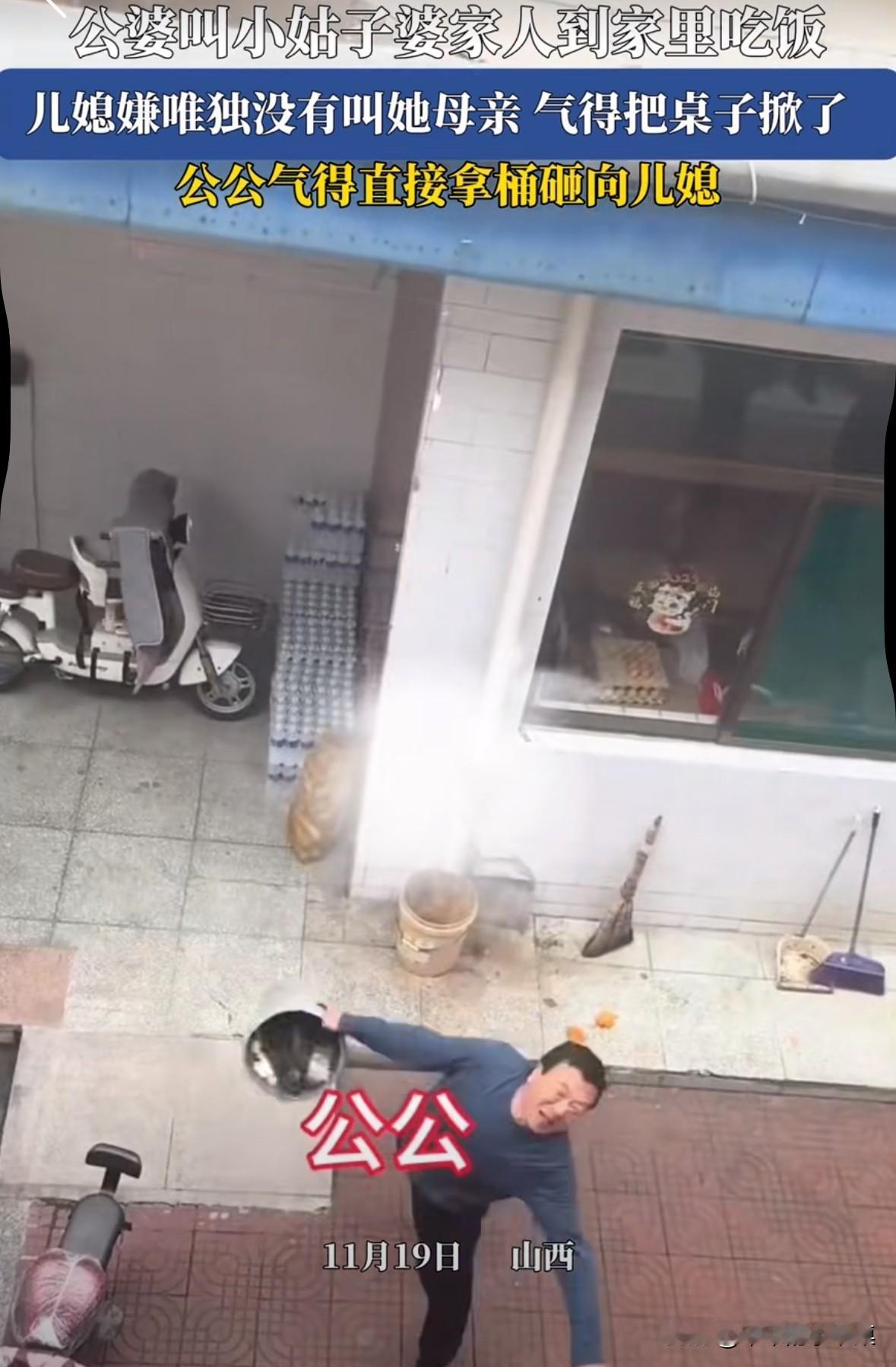公公婆婆做了好吃的,把小姑子婆家人都叫来吃饭了,唯独没有叫儿媳妇的娘家人。 儿媳妇非常生气,于是把刚做好的一桌子菜掀翻了。 公公气的直接拿桶砸儿媳,并且上楼对儿媳骂骂咧咧。 评论区都说这家公婆不懂事,故意的,我怎么觉得是这个儿媳妇拎不清啊。 一桌子菜,也是你婆婆忙活了一上午做的,首先你掀桌就不对。 你可以跟你婆婆说,多做点,我选几个我妈喜欢吃的,我给我妈带点, 然后带走一半的菜,回娘家吃去,眼不见心不烦。 并不是想吃她这几个菜,就是故意气她,上眼药,我不高兴你们也别高兴。 不至于弄的自己像个泼妇一样,你这样做结果就是婆家人更讨厌你,老公也会觉得你不识大体,故意为难他爸妈。 看样子你公公婆婆本来也不喜欢你,你还指望她事事想着你娘家啊。 再说了,两边的亲家都来干什么,徒添尴尬。 如果说只为了吃饭,跟多馋这顿饭似的,真心没必要闹这么大。婆婆 婆家的矛盾