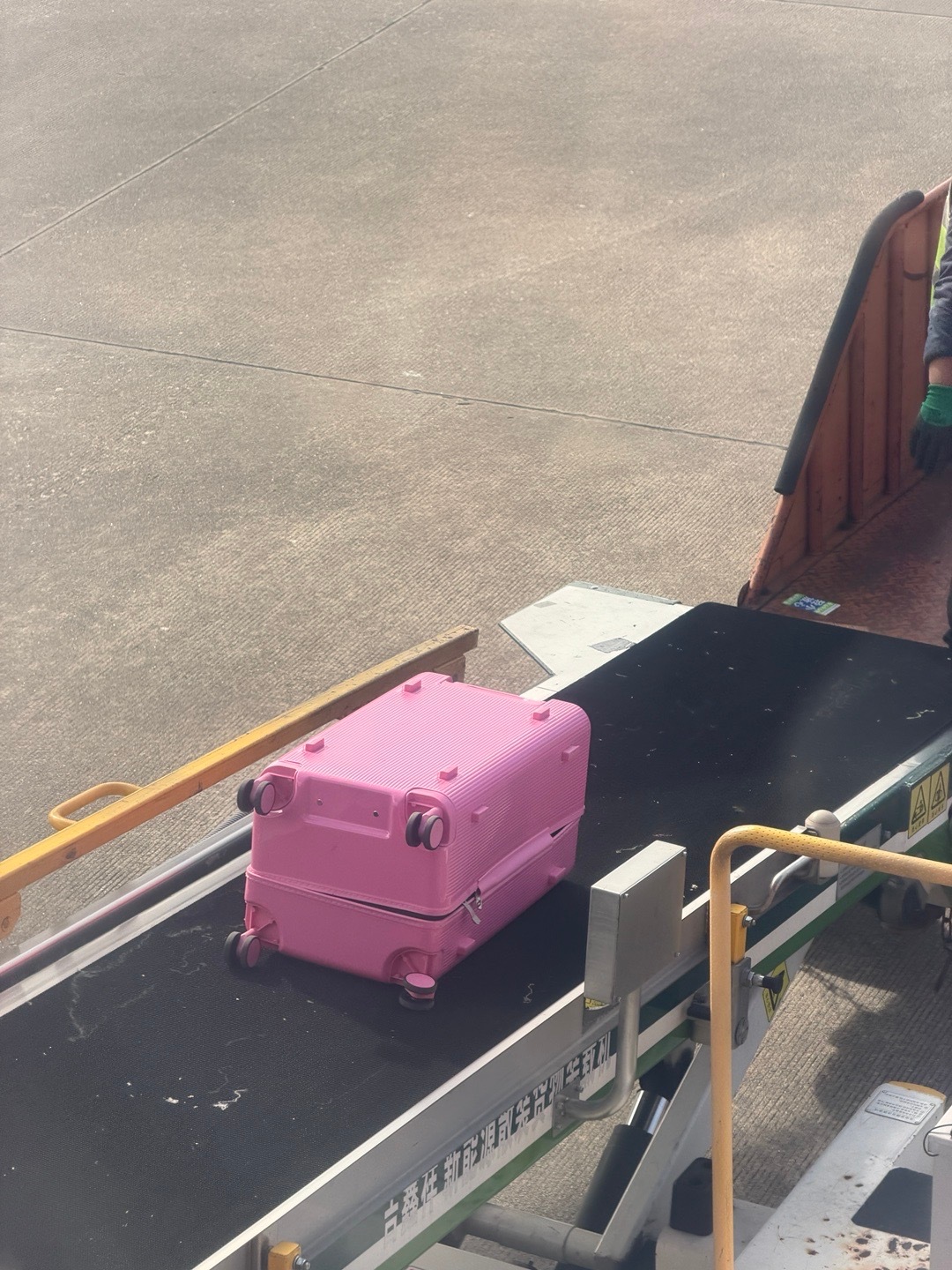 准备起飞的时候看到行李托运了,我的小粉行李箱还是太显眼了