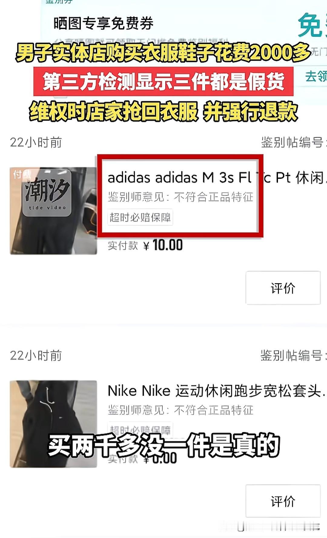 实体店主常常嘲讽电商假货多,万万没想到实体店也和电商一样,也有假货,也是分AB货的。电商是给你看A货(正品),然后给你发B货(质高仿),实体店是两种货混合在一起售卖,有真也有假,达到以假乱真的目的。如果运气差点,购买的几件衣服可能都是假货。 很多品牌实体店都会真假掺着卖,尤其是遇到不识货的人,顾客往往要花很多的冤枉钱买到廉价的假货。如果遇到较真的顾客,拿去网上鉴别真假,基本能查出自己买到的是假货,如果要去实体店理论,或者想着假一罚十,实体店老板一般不会认账,甚至还会像无赖一样。 所以我们在购买品牌服饰的时候,一定要购买认知以内的东西,能识货,究竟值不值这个价,一定要有个基本的判断力和估值能力。