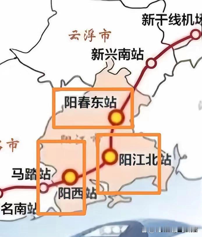 广湛高铁为何在阳江段竟设有3个站?广佛都自愧不如! 广湛高铁全长 400 多公里,共设 11 个站点,而阳江独占3个。这条高铁途经 7 个城市,如此算来,阳江的高铁站数量颇为可观。 阳江论名气不及广州、佛山,论经济实力也比不上湛江、茂名,凭什么能拥有3个站点呢?是有什么特殊原因,还是此地地理位置极为重要,亦或是人口众多?经探究,发现并非如此。 那究竟为何阳江会有阳春东站、阳江北站和阳西站这3个高铁站呢?这座城市为何如此特殊,令人费解。是否只有当地人才清楚其中缘由?广湛高铁为何要在阳江辖区设置3个站点呢?