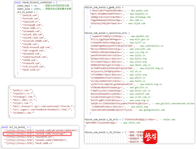 报告中公布的软件需规避的标题或链接(其中包含周鸿祎的微博链接)