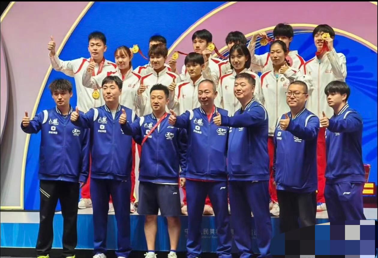 全运会结束——乒乓球项目北京队三冠加冕 太牛啦 全运会轰轰烈烈结束了, 北京队在乒乓球项目中成 最大赢家! 荣获三金三铜的优异成绩! 三块金牌分别是青年队的 男团,女团金牌, 还有成人组王楚钦 马龙 黄友政 这块重量级金牌! 北京青年队男团赢广东队, 北京青年队女团赢山东, 北京成人组男团赢上海! 四个团体,北京拿下三个冠军🏆, 北京队的梯队建设好啊👌