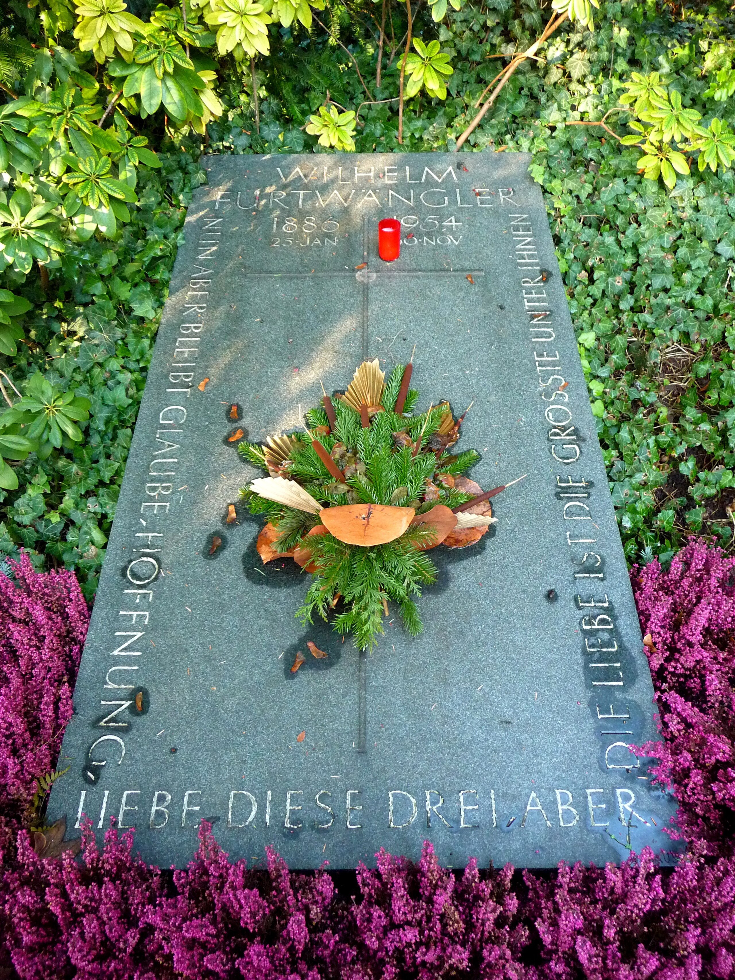 1954年11月,富特文格勒因肺炎死于巴登-巴登。安葬在海德堡的博格弗雷霍夫墓地(Bergfriedhof)。 富特文格勒墓碑上的字是Nun aber bleiben Glaube, Hoffnung, Liebe, diese drei; aber die Liebe ist die größte unter ihnen. “如今常存的有信仰、希望和爱,这三者中,最(伟)大的是爱。”出自《哥林多前书》13章