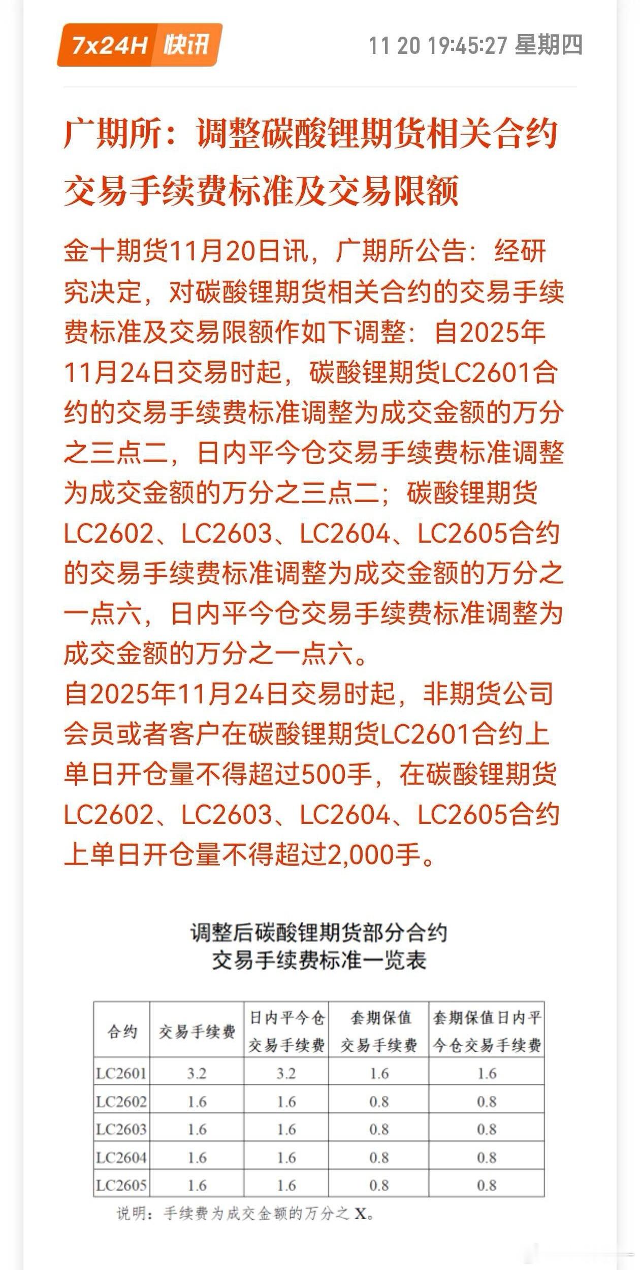 这下好了,真进一步限仓了,周一我才讲完再这样波动几天交易所就要下场。讲重点:01 合约从限仓 2000 手调整为 500 手,手续费方面周一是万分之 0.8,24号调整后是万分之 3.2,也就是和周初比,日内开平仓翻了 4 倍。