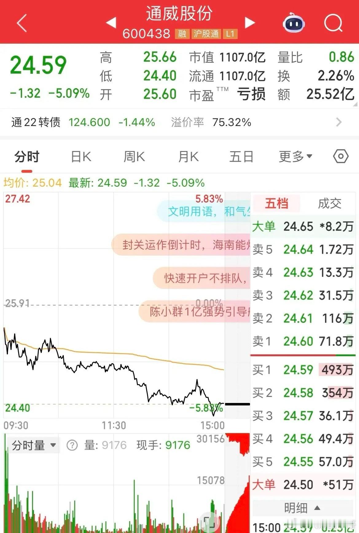 今天通威股份可谓暴跌,一路下行,几乎没有任何抵抗,昨天的涨幅全部还回去还不够,但是成交量却少于昨天。不怕震荡,就怕无人问津……光伏会议看来影响有限,也没出来什么实质性的信息。