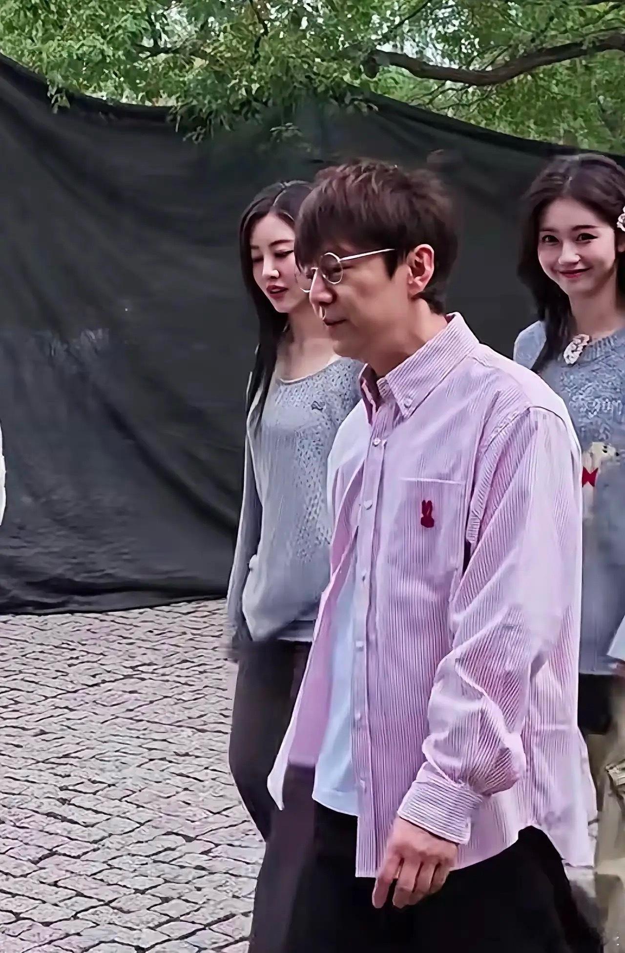何炅也老了刷到这张路透图,盯着何炅的侧脸看了好久浅紫条纹衬衫松松垮垮,眼镜框滑到鼻梁,连走路时的肩线都比以前柔和了些,突然就懂了“时光是悄悄落在肩膀的”。想起小时候守着《快乐大本营》看他蹦蹦跳跳,现在看他在综艺里带新人,头发里藏着的白丝要仔细看才会发现,连笑起来眼尾的纹路都比以前深了点,但转身帮身后女生理裙摆的动作,还是和二十年前一样轻。原来我们长大的痕迹,也藏在他慢慢柔和的轮廓里,他没变老,是陪着我们一起长成了更温柔的样子。你们看这张图,有没有想起第一次看他节目的瞬间?评论区来唠!