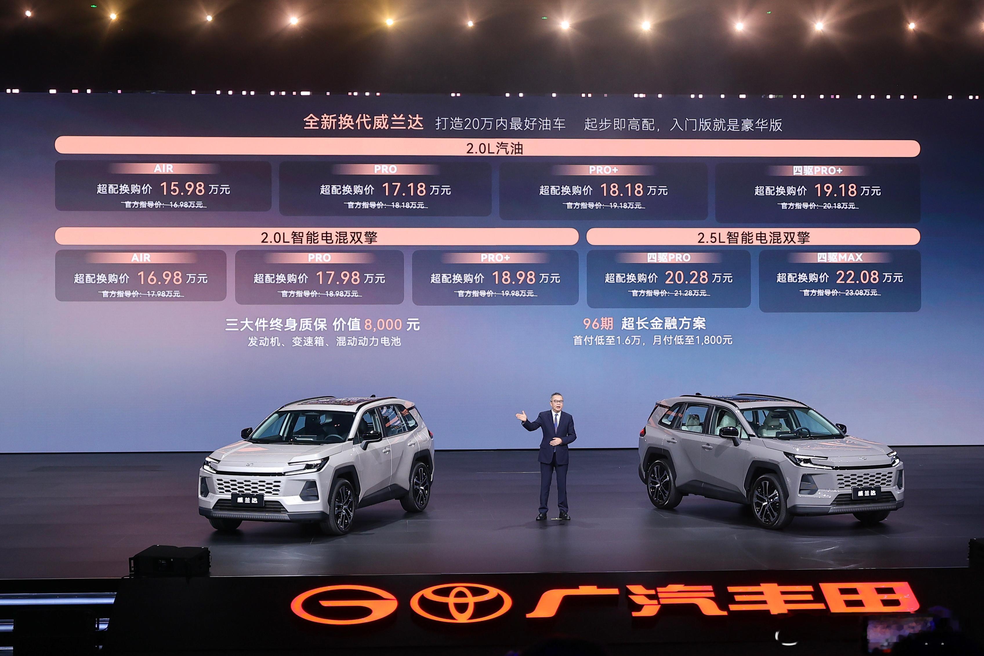 20万内油车卷王来了!换代威兰达15.98万起太香了合资油车这次是真的卷到心坎里了——换代威兰达直接把“起步即高配”焊死在配置表上,中高配才有的实用功能全线下放成标配,花入门价就能享越级体验,性价比直接拉满。全系能享1万元置换补贴,最终超配换购价低至15.98万起。智能化直接拉满域控架构+超好用智舱+靠谱智驾,第五代双擎技术带来更强动力和更低油耗。广丰这波操作太圈粉了!一边让威兰达完成油车智能化底层重构,重塑合资油车竞争力;一边还有纯电旗舰铂智7坐镇,燃油+纯电双线发力。预算20万内想买油车的朋友,换代威兰达这波定价和配置,可以冲