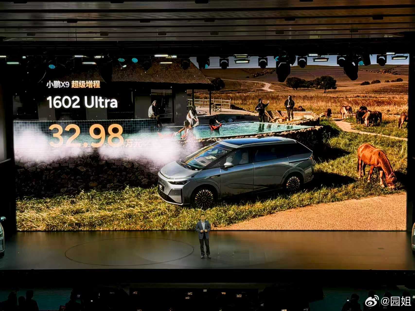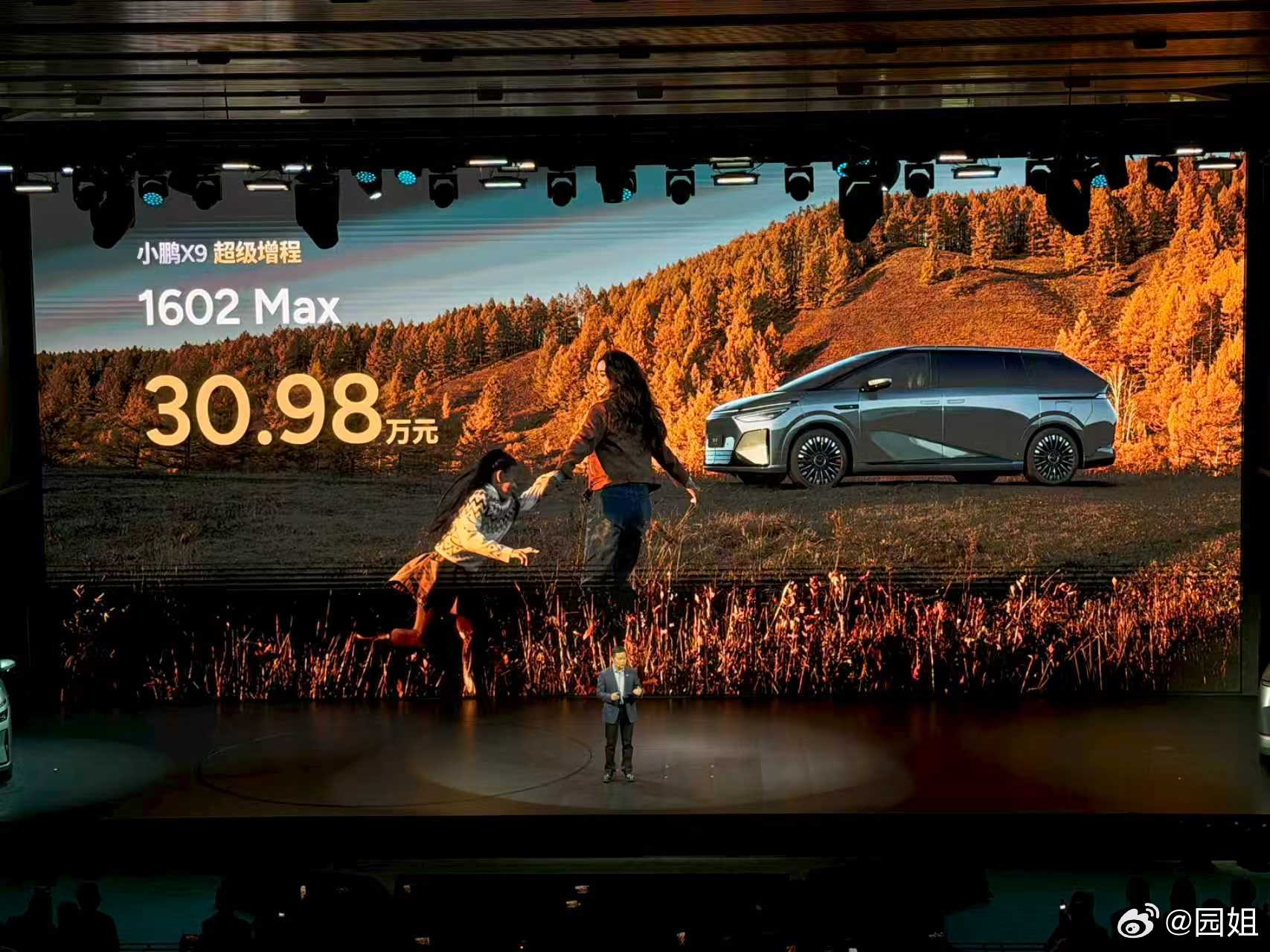 小鹏X9超级增程1602Max版上市价为30.98万元,1602Ultra版为3