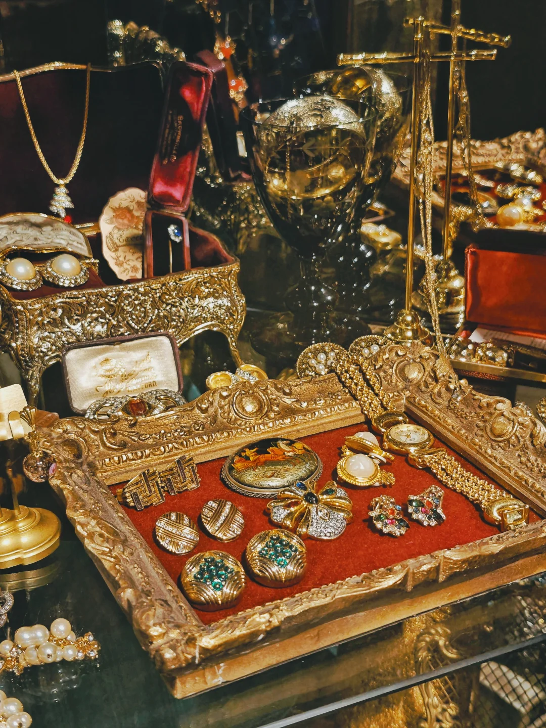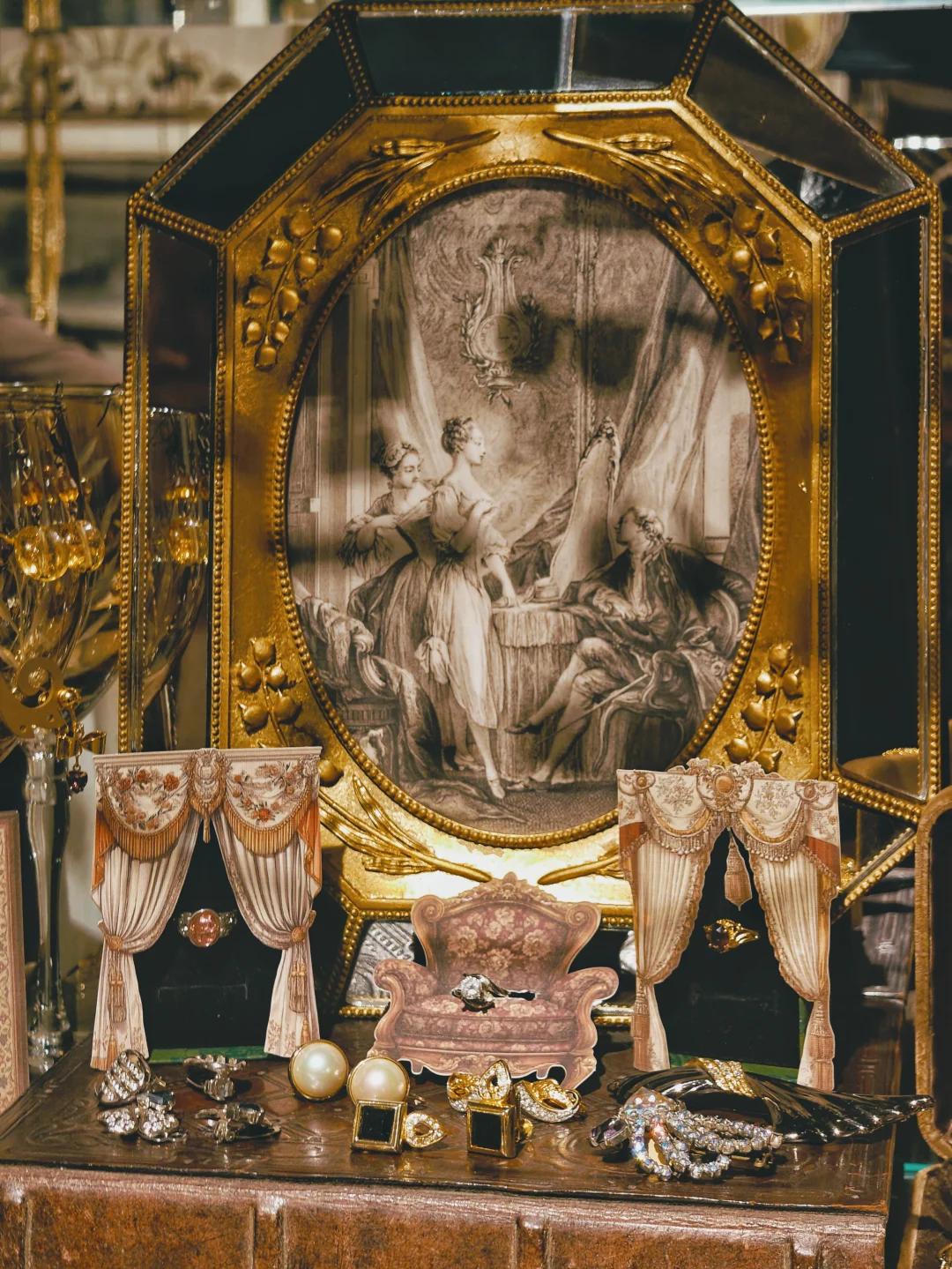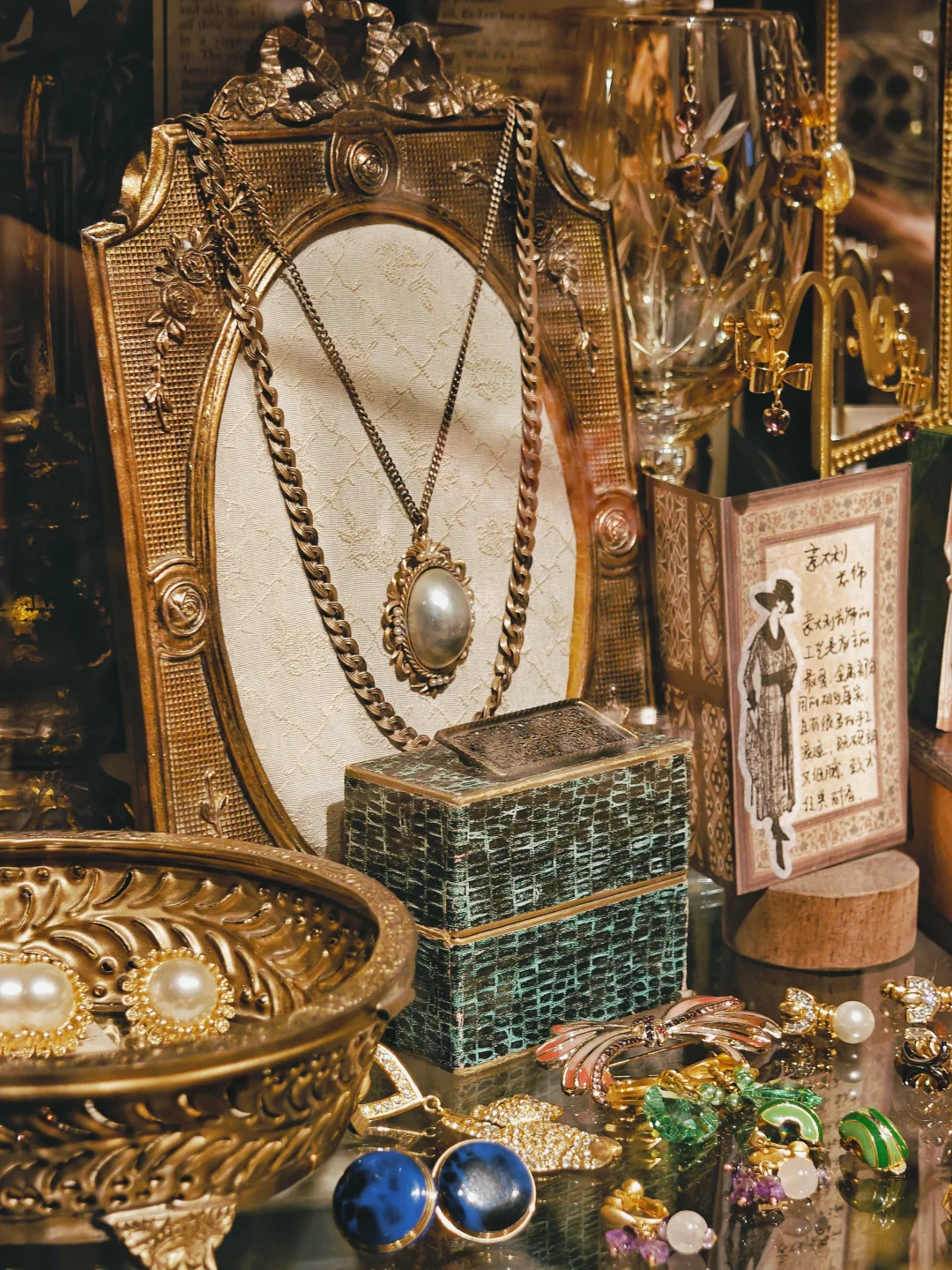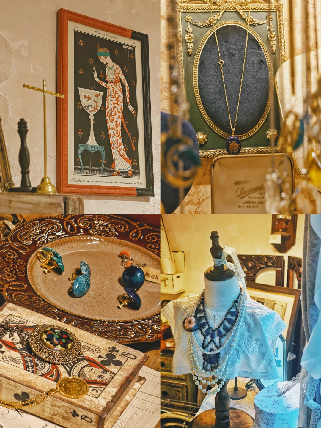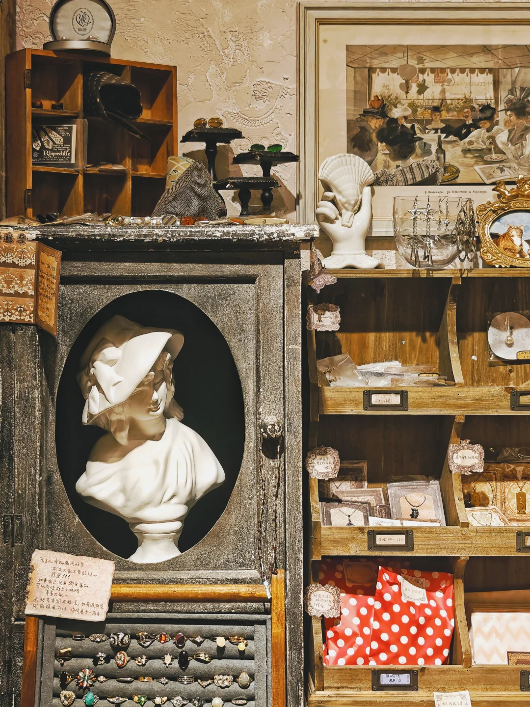 💍藏品量可不小,选择困难症能泡两小时。店铺布置得也很有氛围感,从木质的古旧玻璃展示柜和首饰盒,到装饰风格的吊灯和座椅,让人有种逛欧洲街头小店的错觉