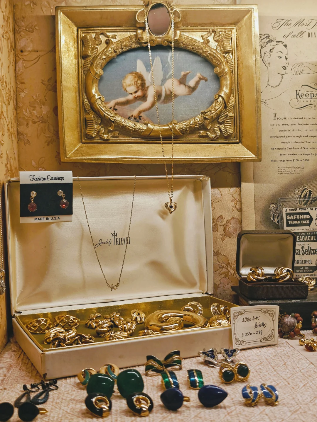 💍和店主聊了聊,店里首饰大多是从法意日美淘回来的,不是“中古风格”,是实打实的真Vintage,大部分是上世纪30s-80s的,时代特征很明显