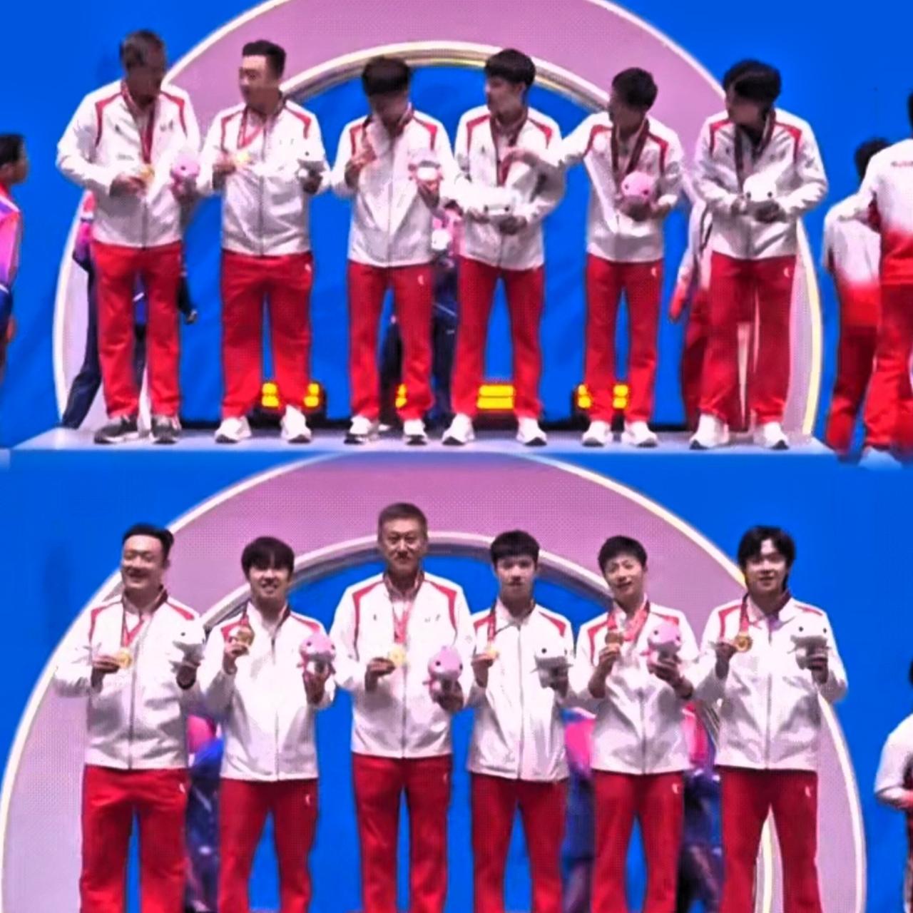 全运会颁奖礼 这一幕直接让我泪目了! 京队这传承也太动人了吧! 还是那个熟悉的配方, 教练站最中间, 小队员被师兄们轻轻推到C位。 谁还记得当年楚钦被哥哥们护在正中央的样子? 如今黄有政也站在了这个充满爱意的位置上。 “教练坐镇,小弟站C”这个传统真的太戳了! 从马龙到王楚钦, 再到现在的新生代, 这份温柔的传递看得人心里暖暖的。 搞团魂的姐妹们谁懂啊! 京队这次真的没有遗憾了, 龙队也迎来了最完美的结局!