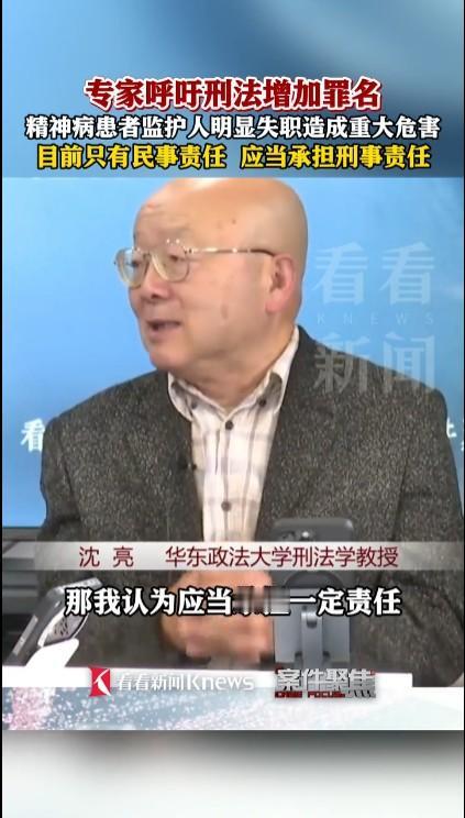 从公众心理上来说,不能让精神病人伤害了别人犯下重罪还能不负责任,让其监护人负刑事责任肯定得到广泛支持。但实施起来可能就比较难了,比如什么叫失职?判定起来司法机关的自由裁量权就很大,也容易产生权力寻租等其他问题。很多精神病人的监护人是父母等,如果让他们不上班挣钱只监护精神病人,家庭生活谁来保障?特别是父母年龄大了没法监护怎么办?最后的结果很可能就是怕精神病人出事,就把病人锁起来不让其外出惹事,还可能会有更多被精神病产生。而且,权利和义务是对等的,赋予监护人如此的责任,国家是不是应该给监护人一定的补偿?