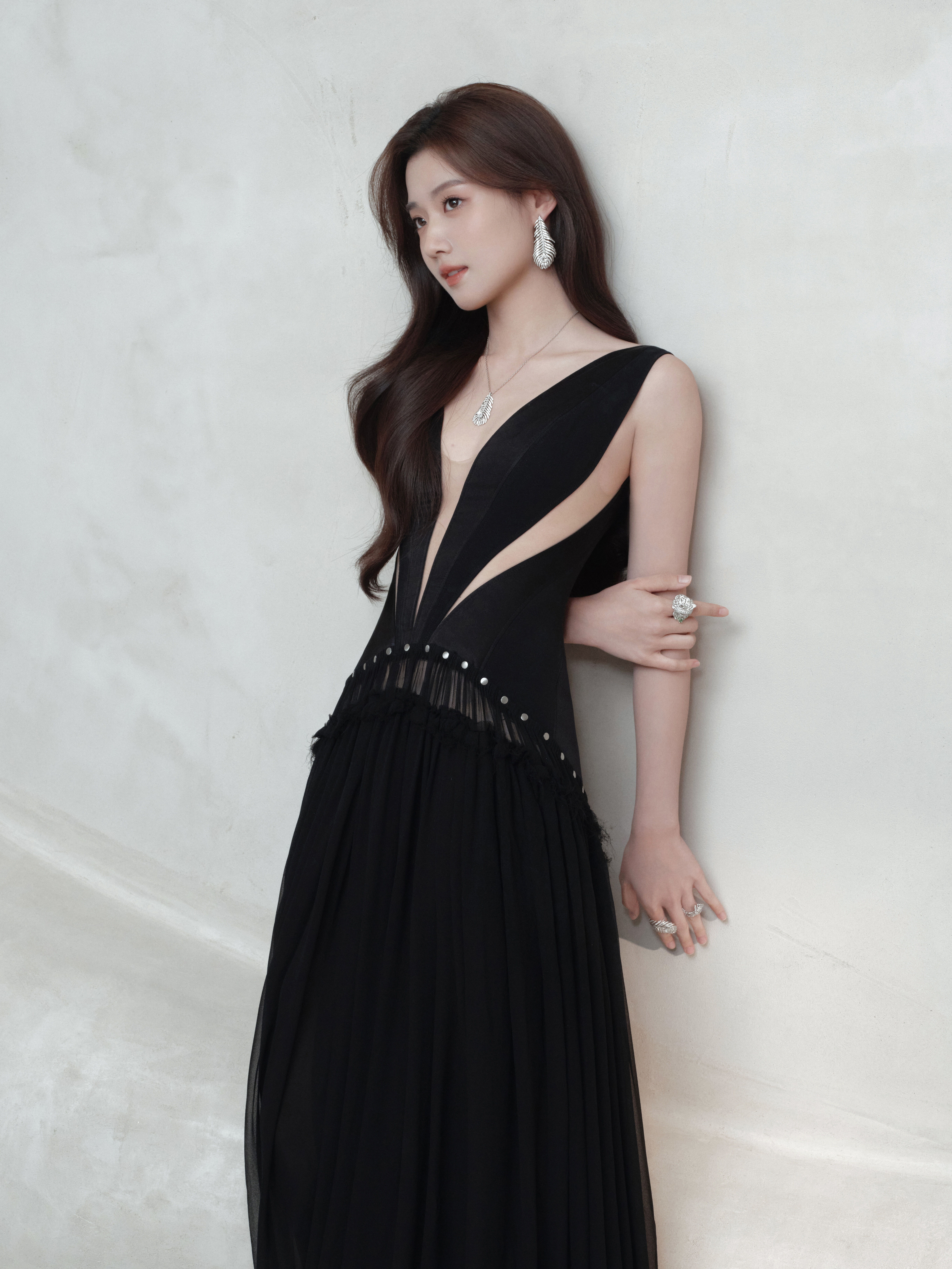 卢昱晓活动造型太惊艳了!一袭一字肩酒红包臀裙,兼具纯美与灵动,魅力十足。
