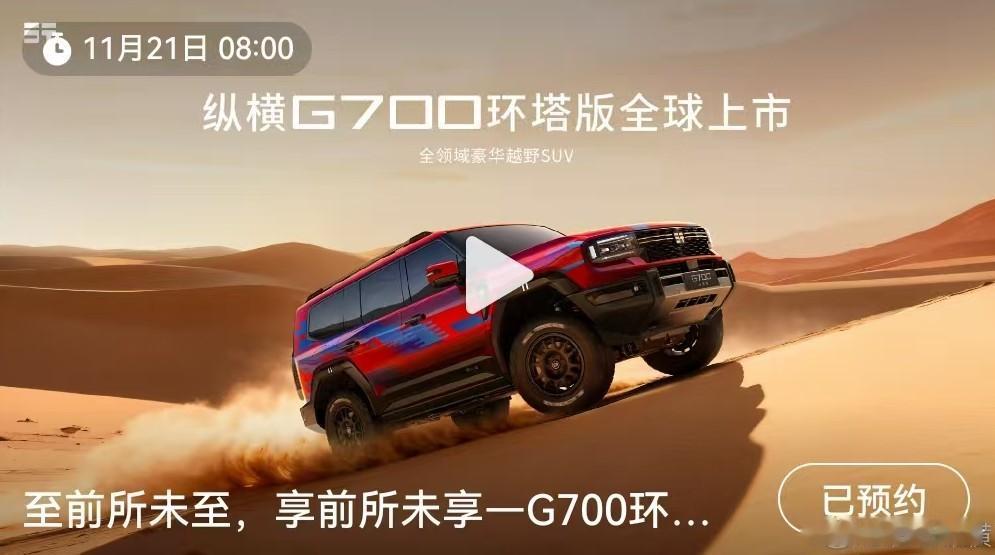 纵横广州,高能开启!2025广州国际车展暨纵横G700环塔版全球上市发布会,11月21日8:00正式开始!即刻预约,锁定发布会高光时刻,共鉴非凡!